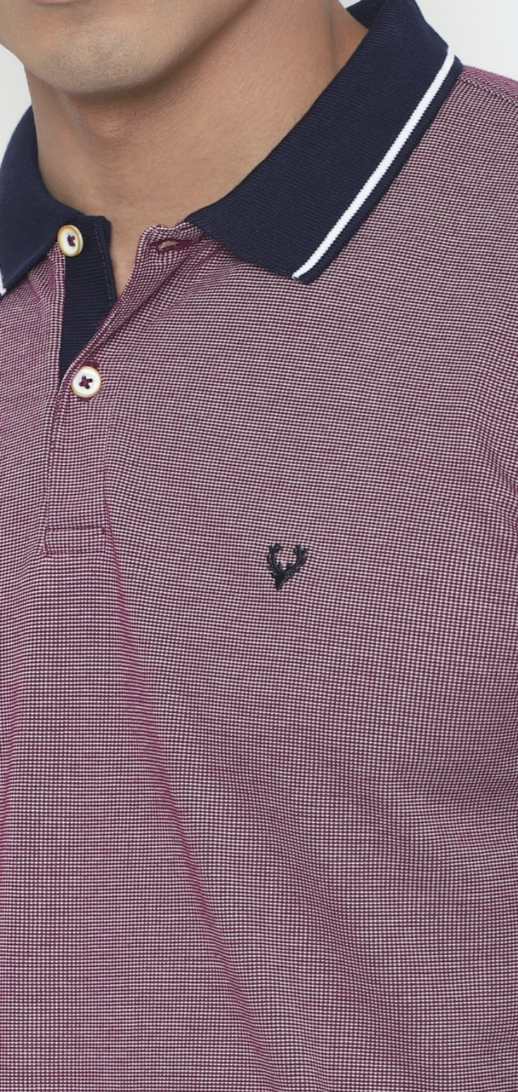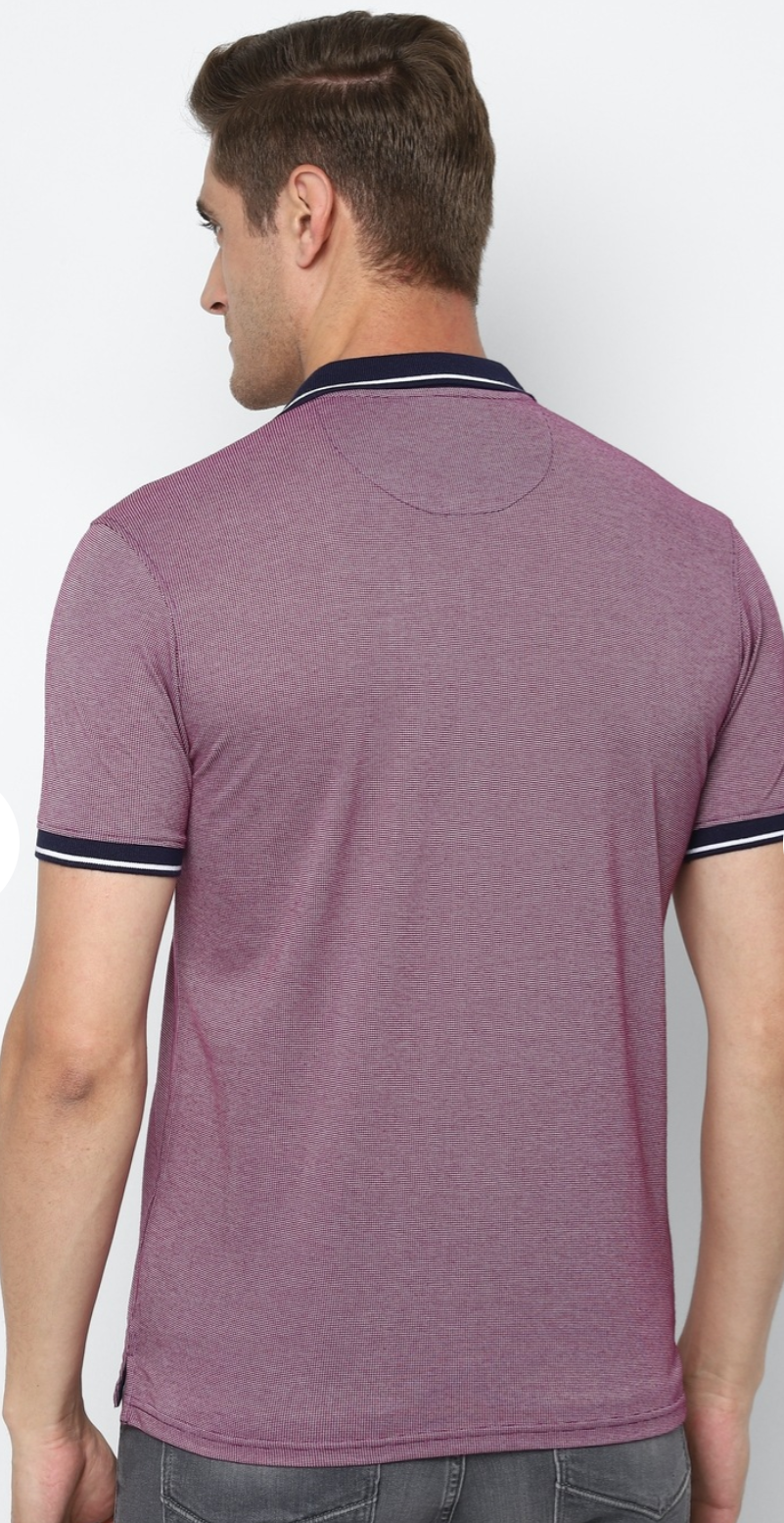 Men Purple Textured Polo Neck T-Shirt