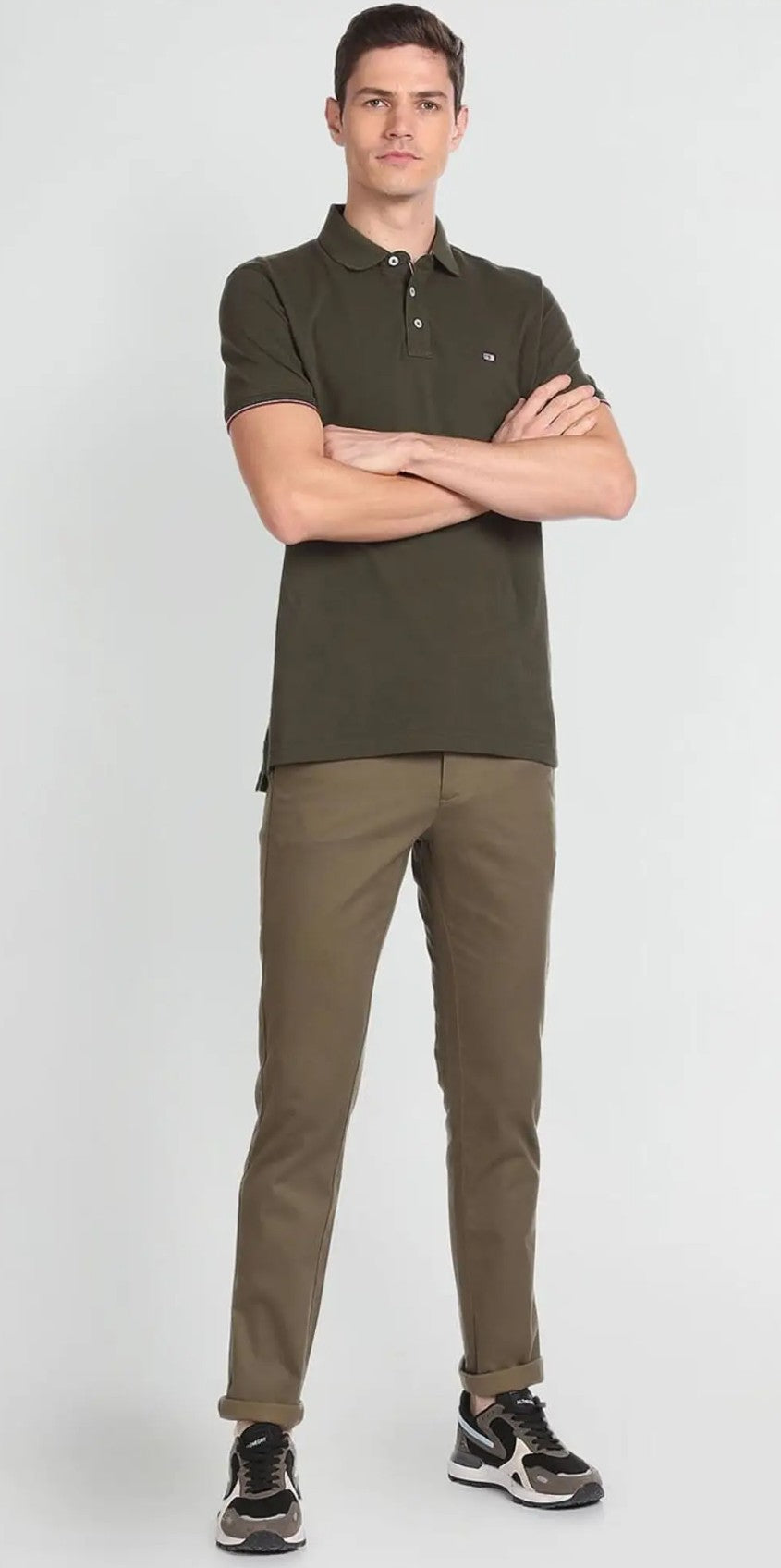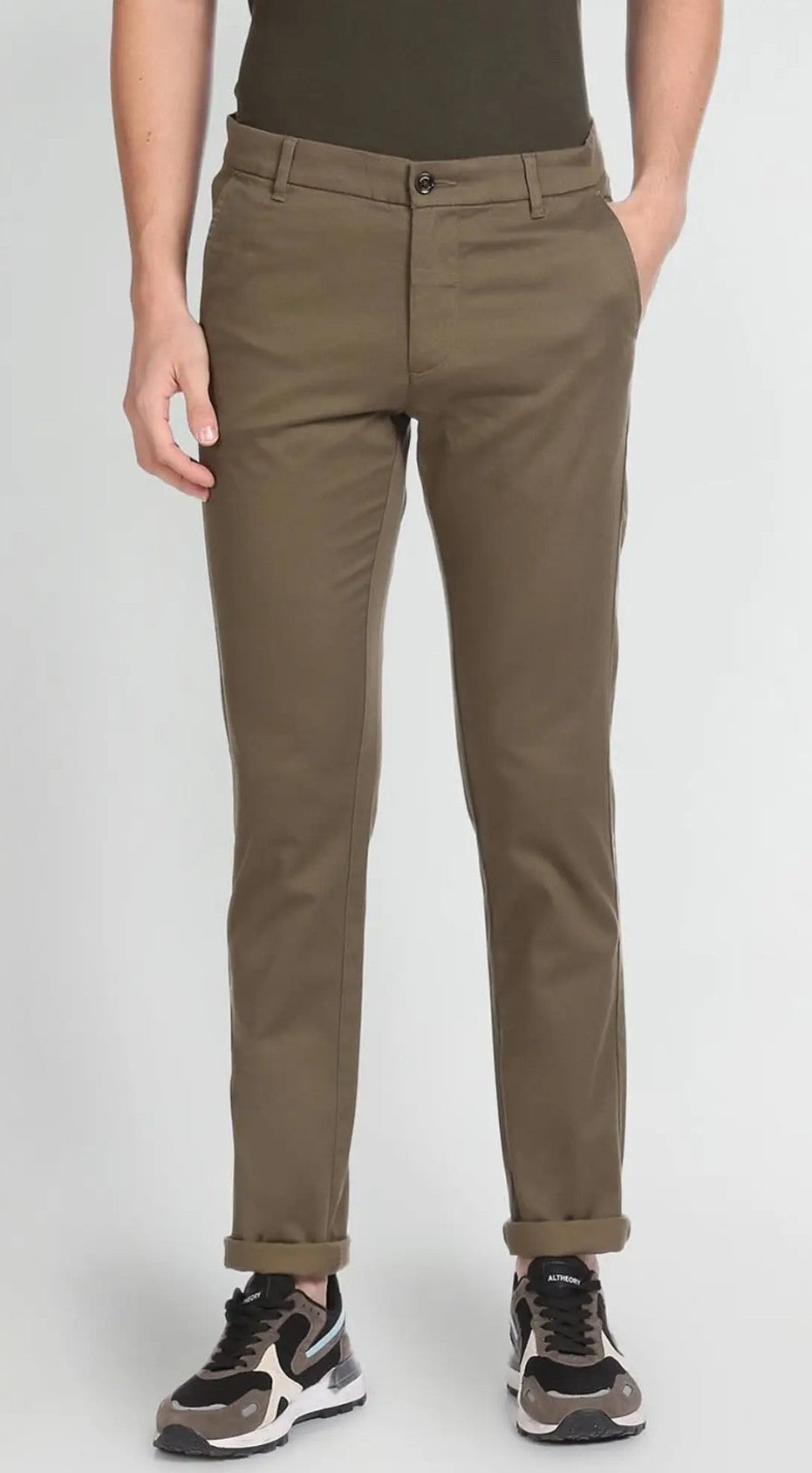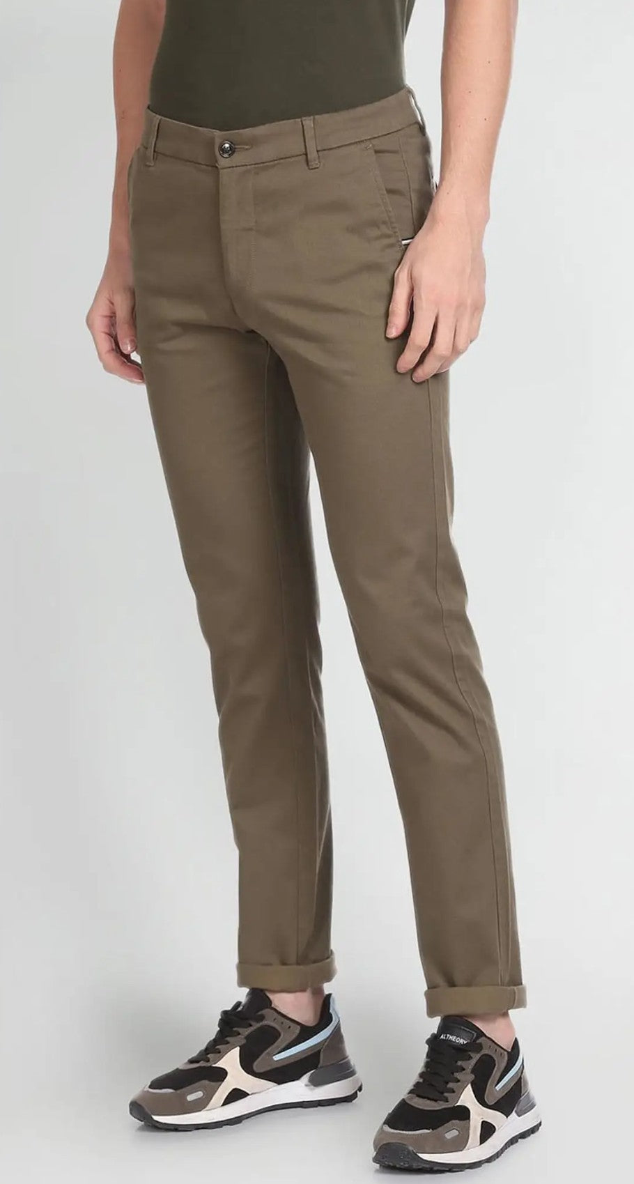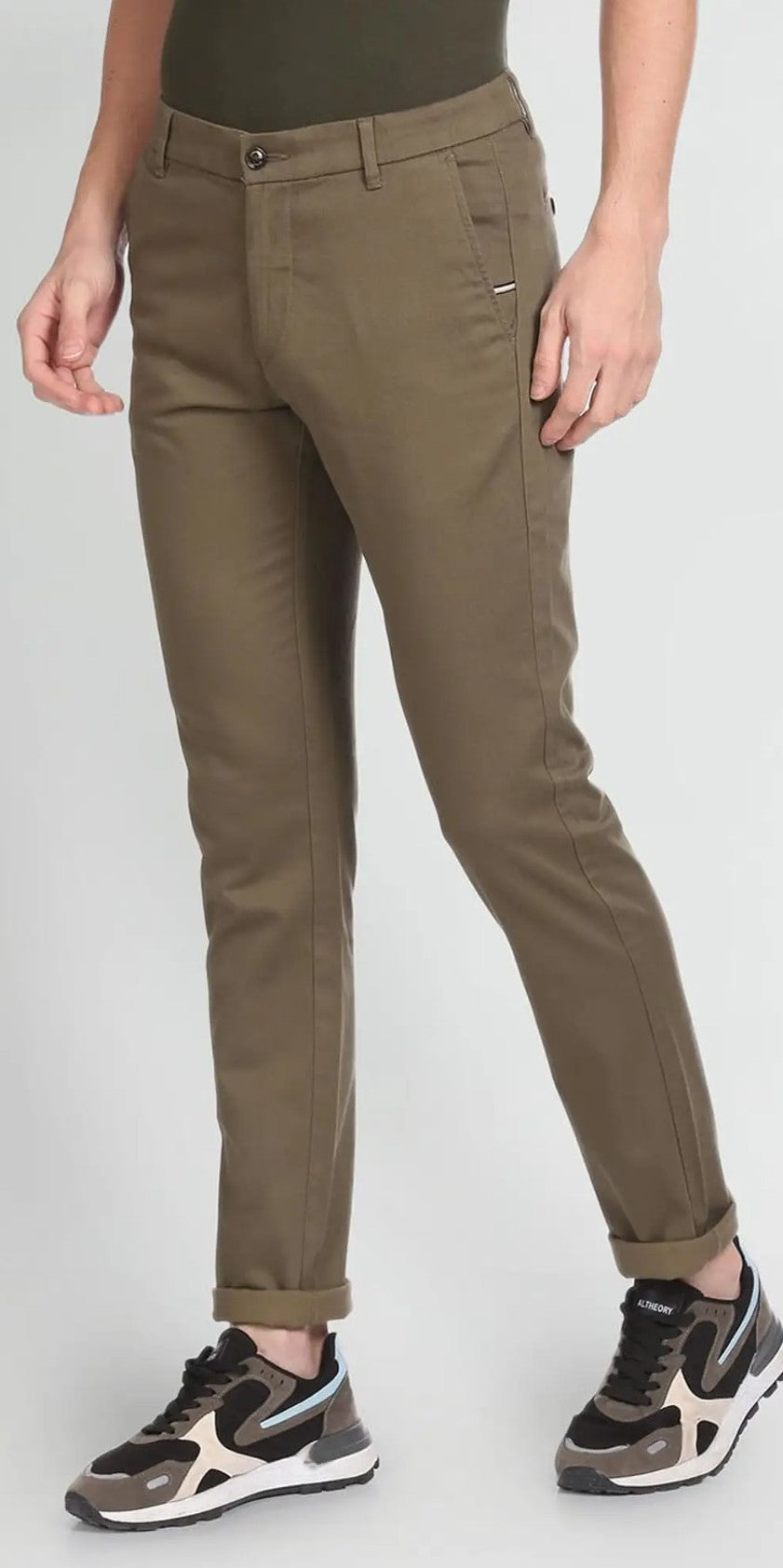 Arrow Sport Green Cotton Slim Fit Printed Chinos