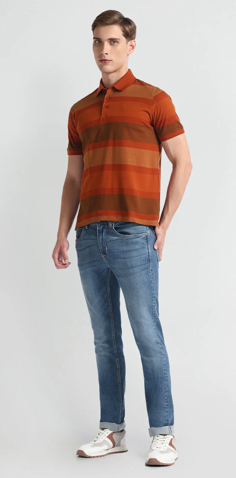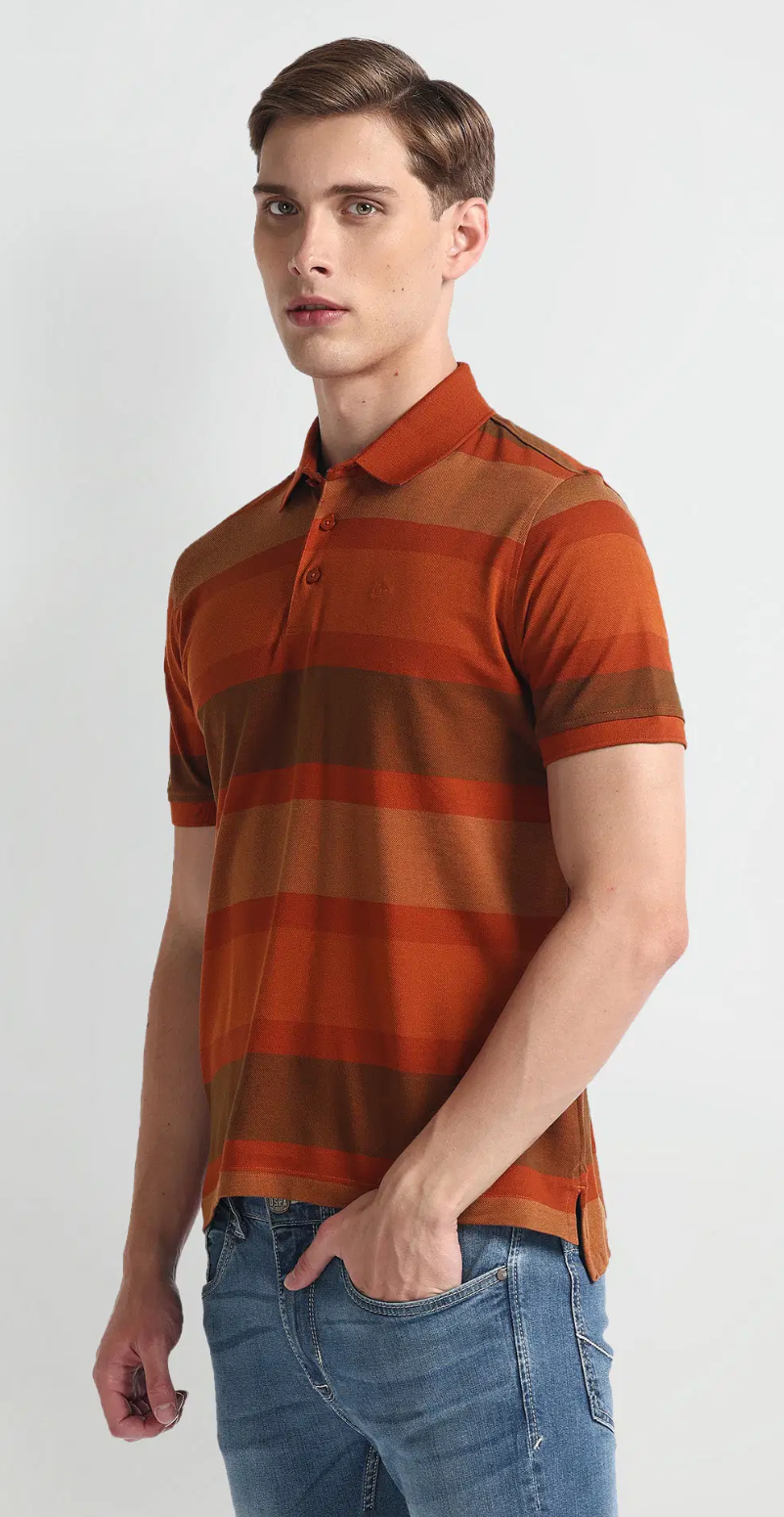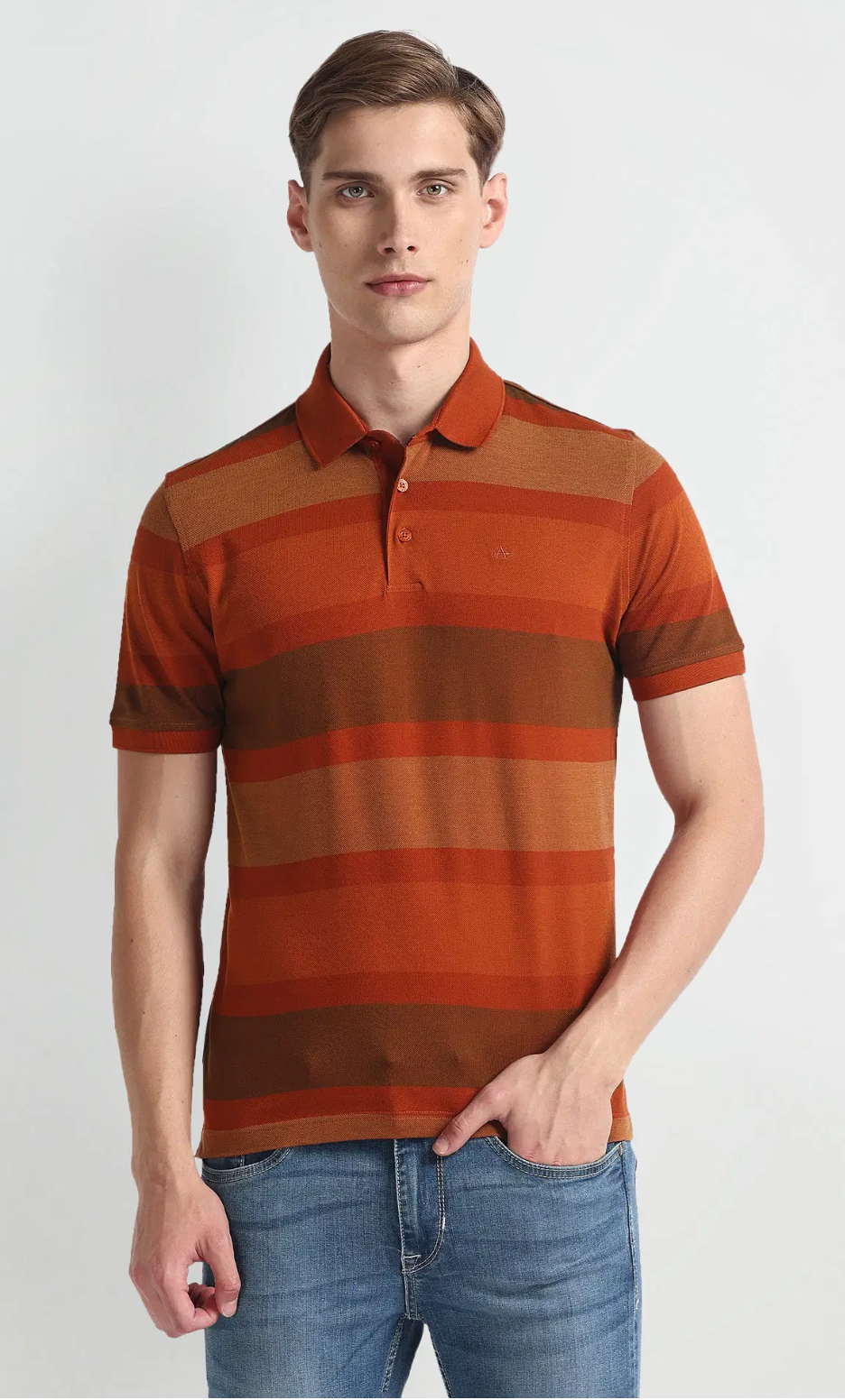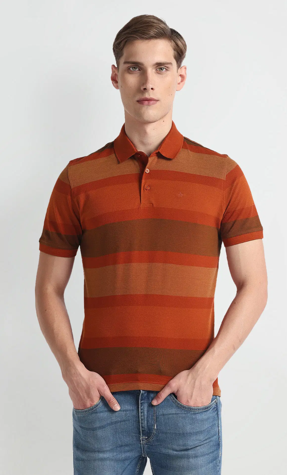 ARROW Horizontal Stripe Cotton Polo Shirt