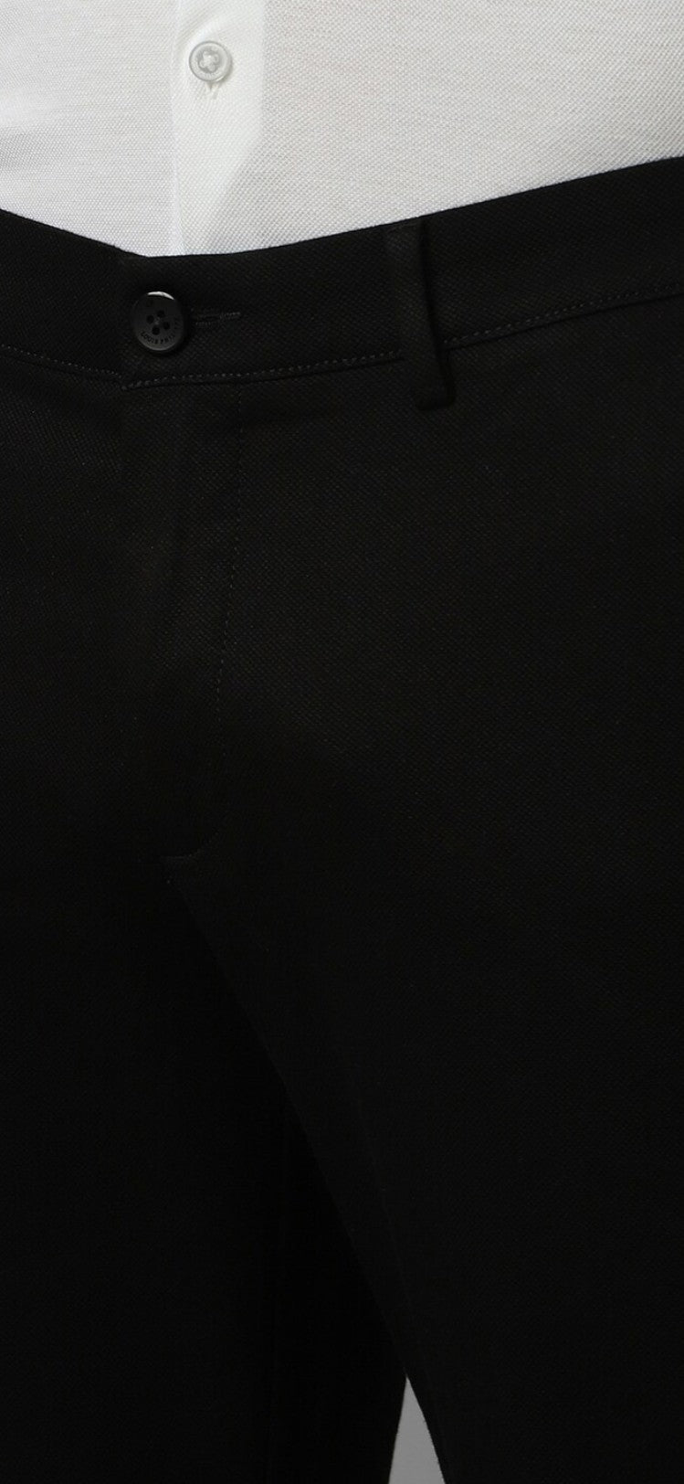 Men Black Slim Fit Textured Flat Front Casual Trousers