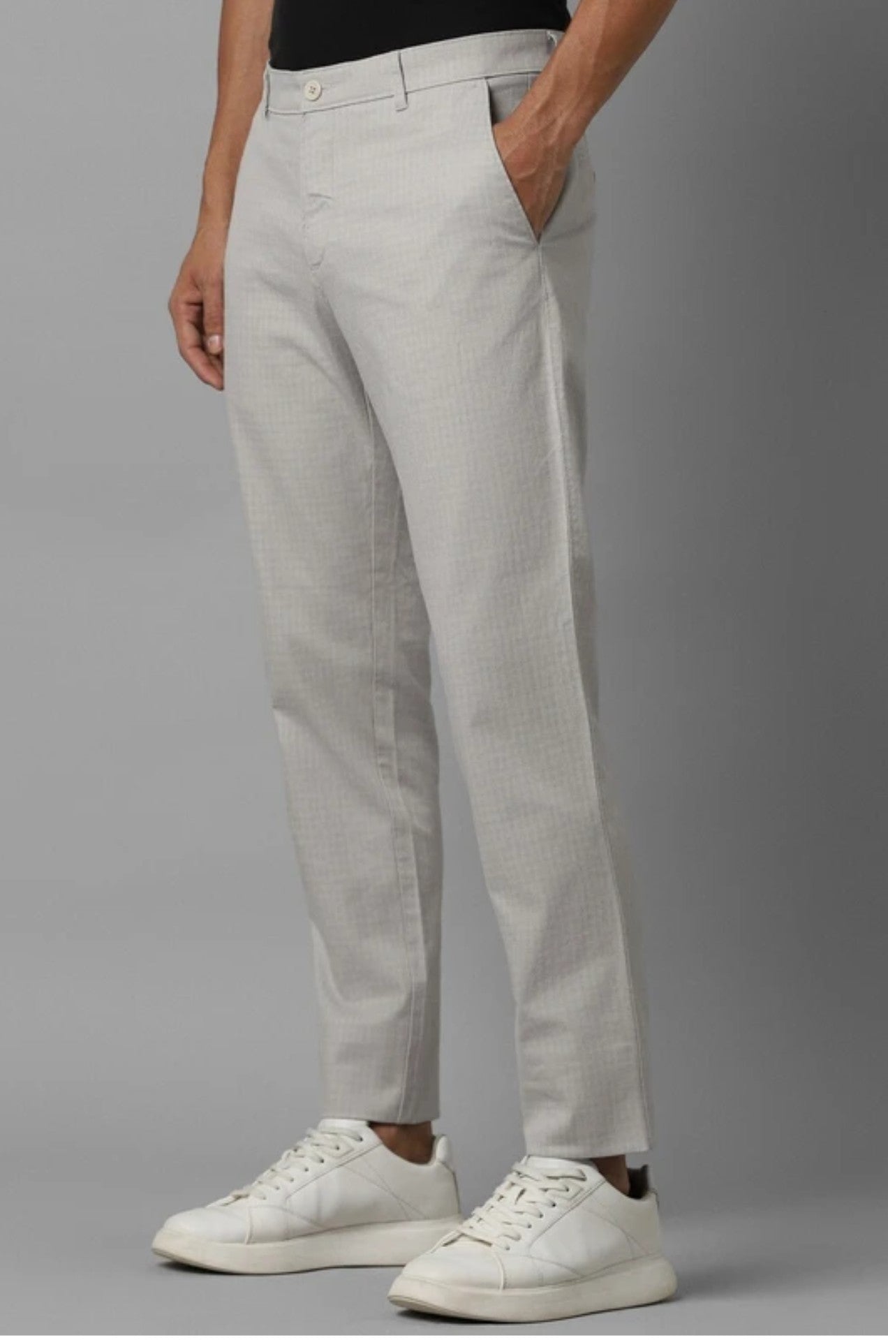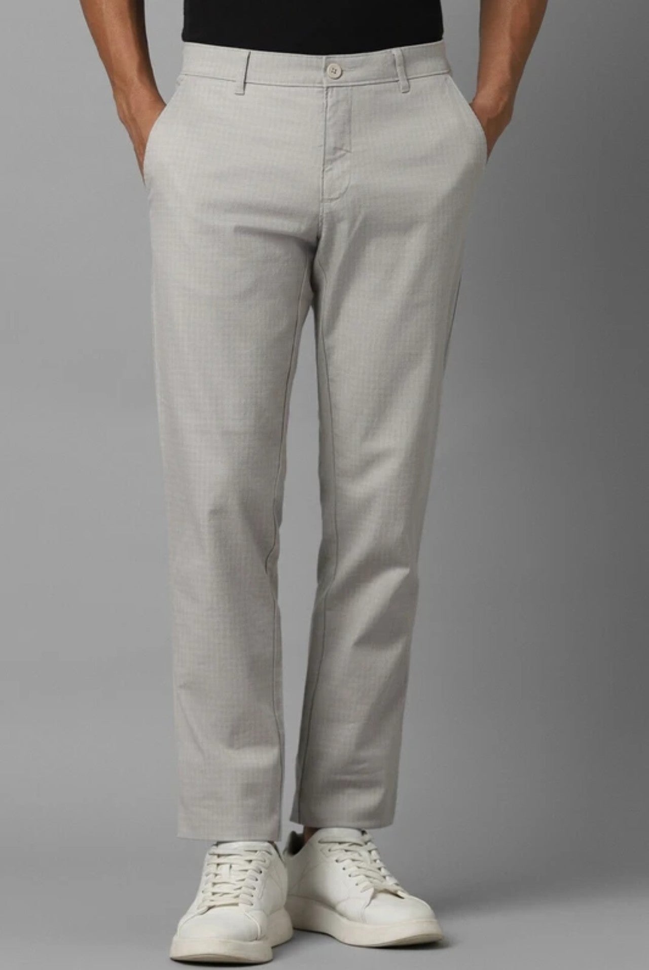 LOUIS PHILIPPE Men Tapered Grey Cotton Blend Trousers