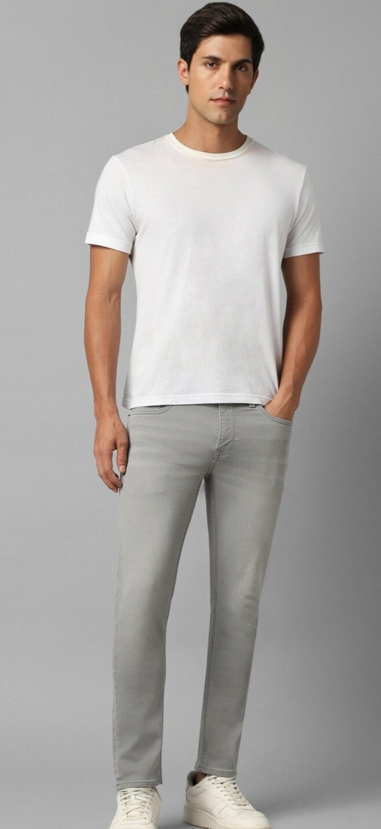 Introducing the Louis Philippe grey jeans, designed for the modern man seeking a smart yet casual look. Crafted from a comfortable blend of cotton and spandex, these jeans offer flexibility and a low waist rise for optimal comfort. The light wash enhances versatility, making them perfect for everyday wear. Pair them effortlessly with your favorite t-shirt or shirt for a stylish ensemble that embodies contemporary fashion. Experience the perfect balance of style and comfort.