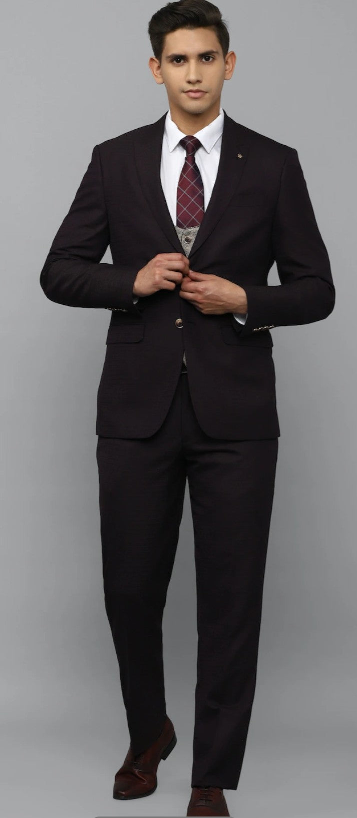 Elevate your formal wardrobe with this Louis Philippe two-piece suit, featuring a sleek slim fit and timeless solid black color. Crafted from a premium blend of polyester, viscose, and wool, it ensures both comfort and style for any formal occasion.