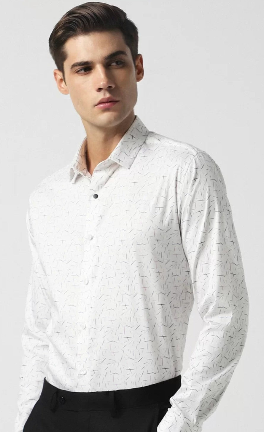 V Dot Slim Fit Printed Formal Shirt