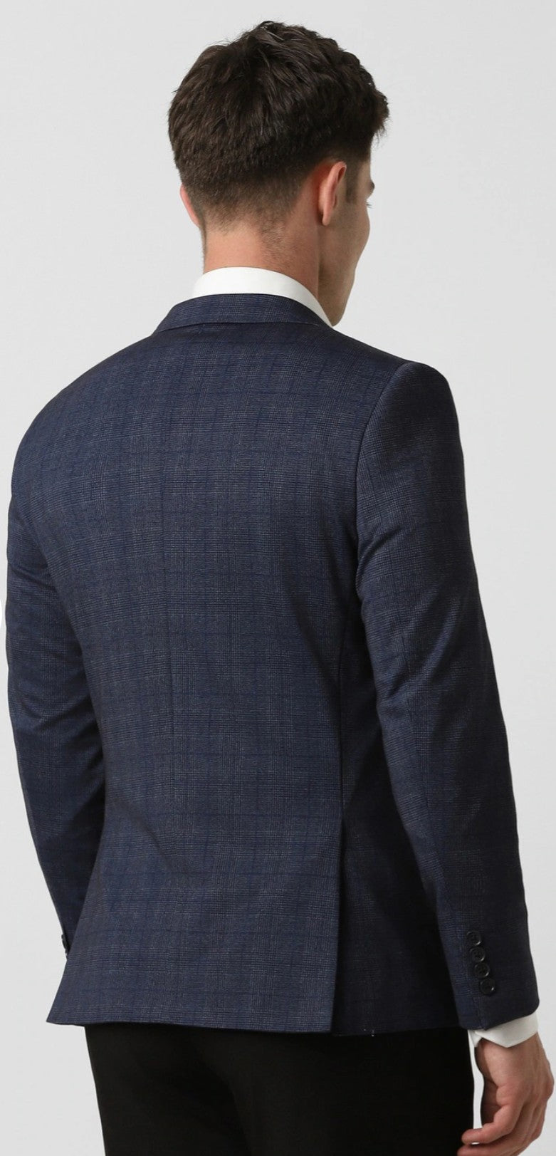 MEN NAVY CHECK SUPER SLIM FIT FORMAL BLAZER