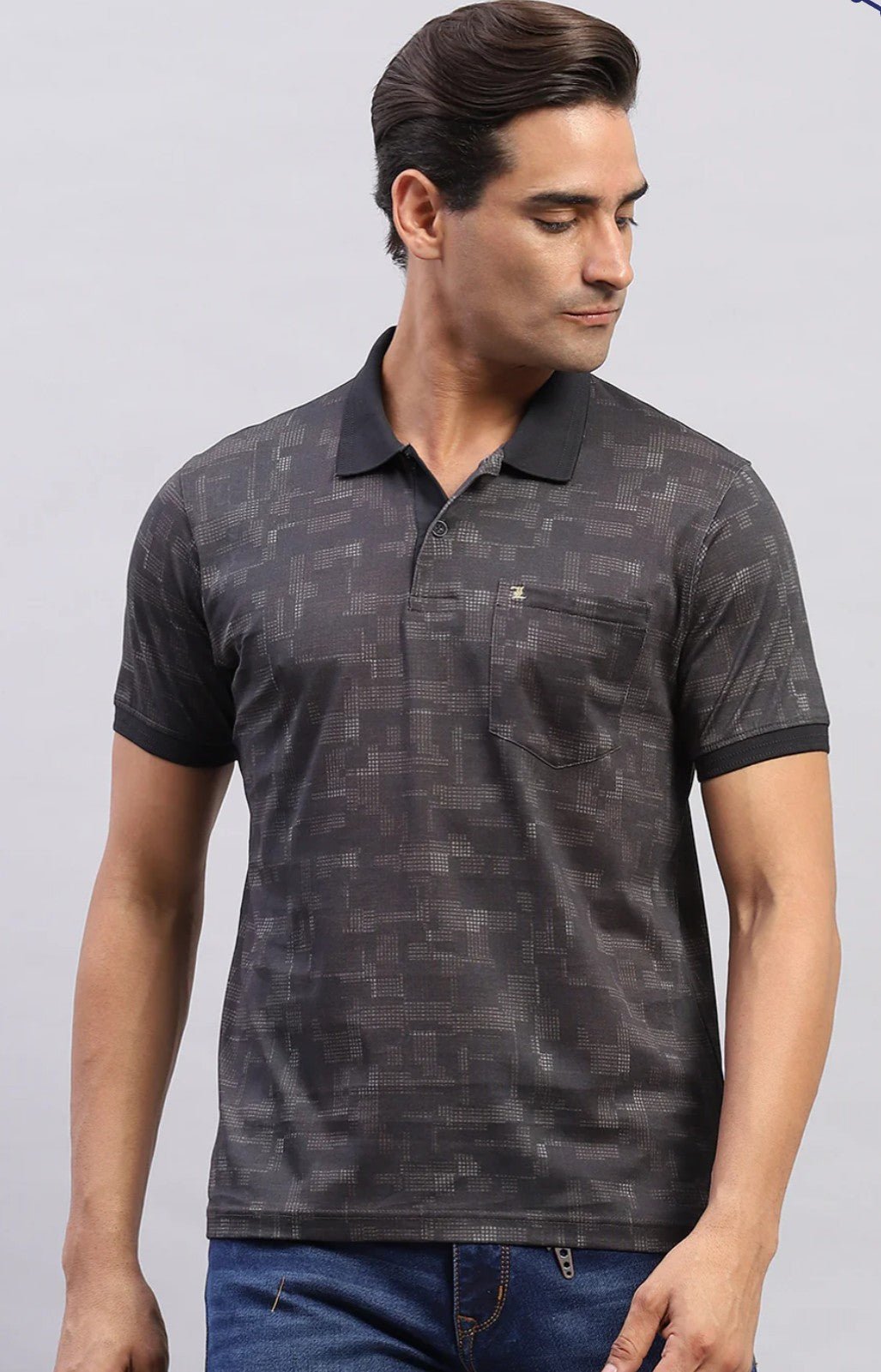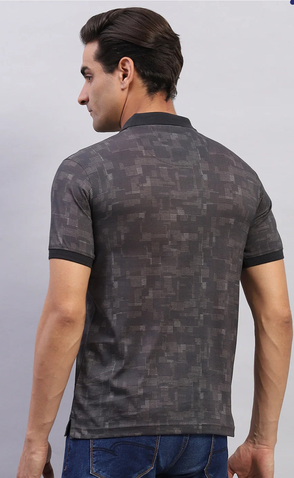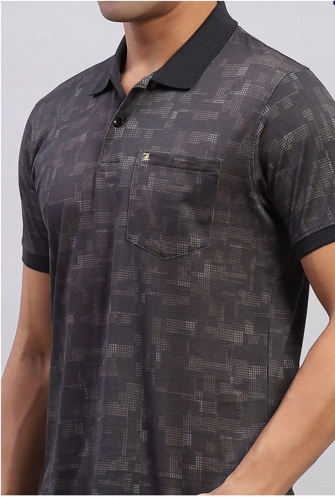 Men Black Printed Polo Collar Regular Fit Half Sleeve T-Shirt