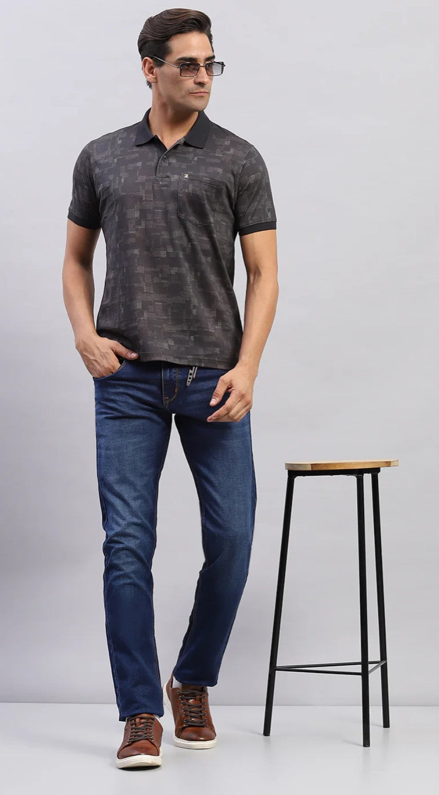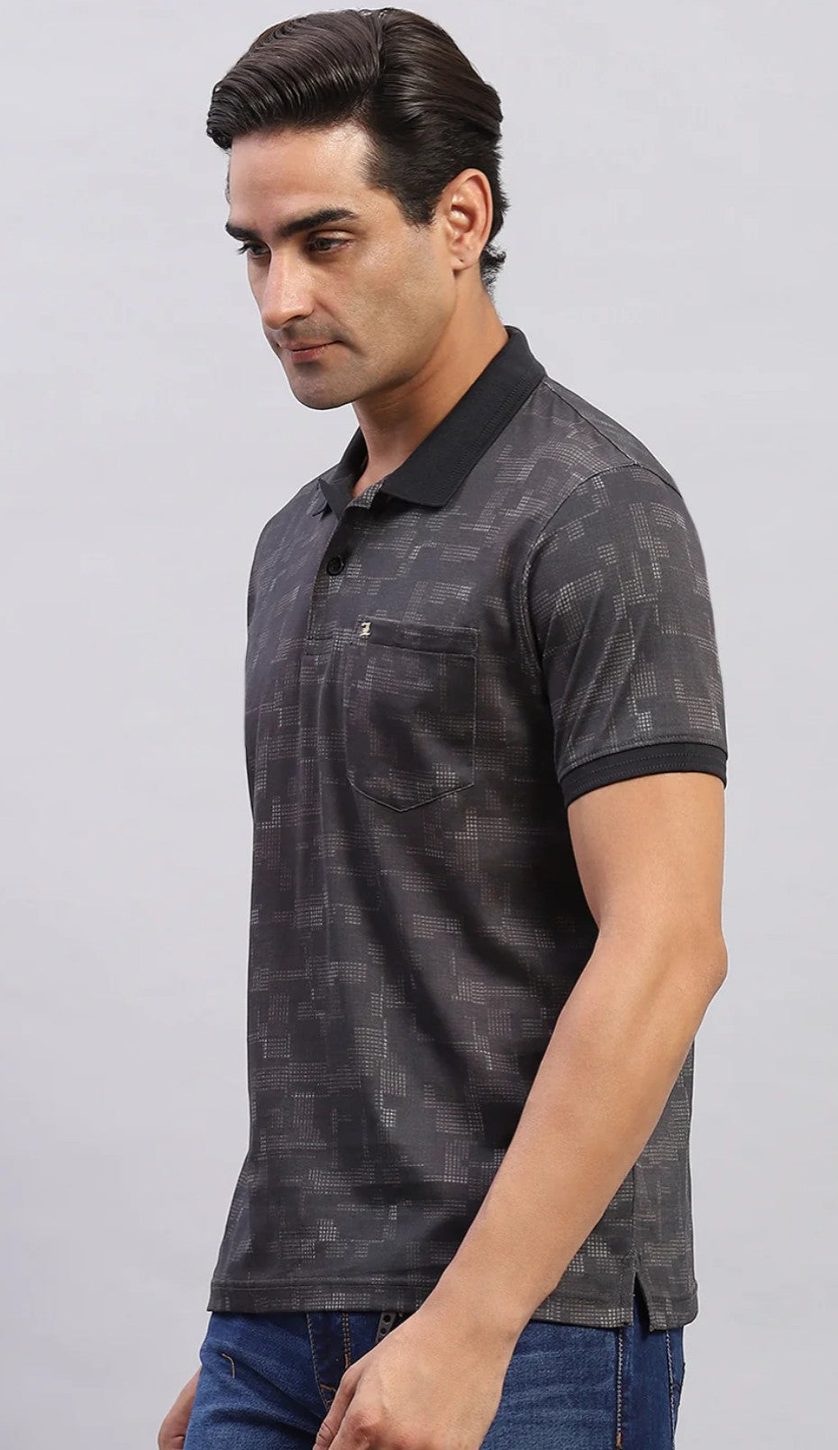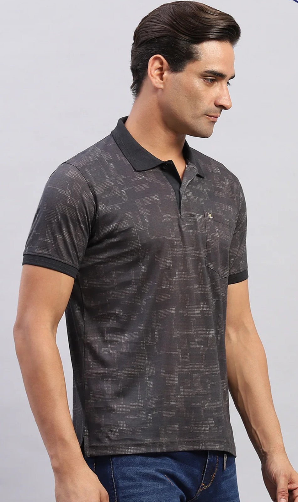 Men Black Printed Polo Collar Regular Fit Half Sleeve T-Shirt