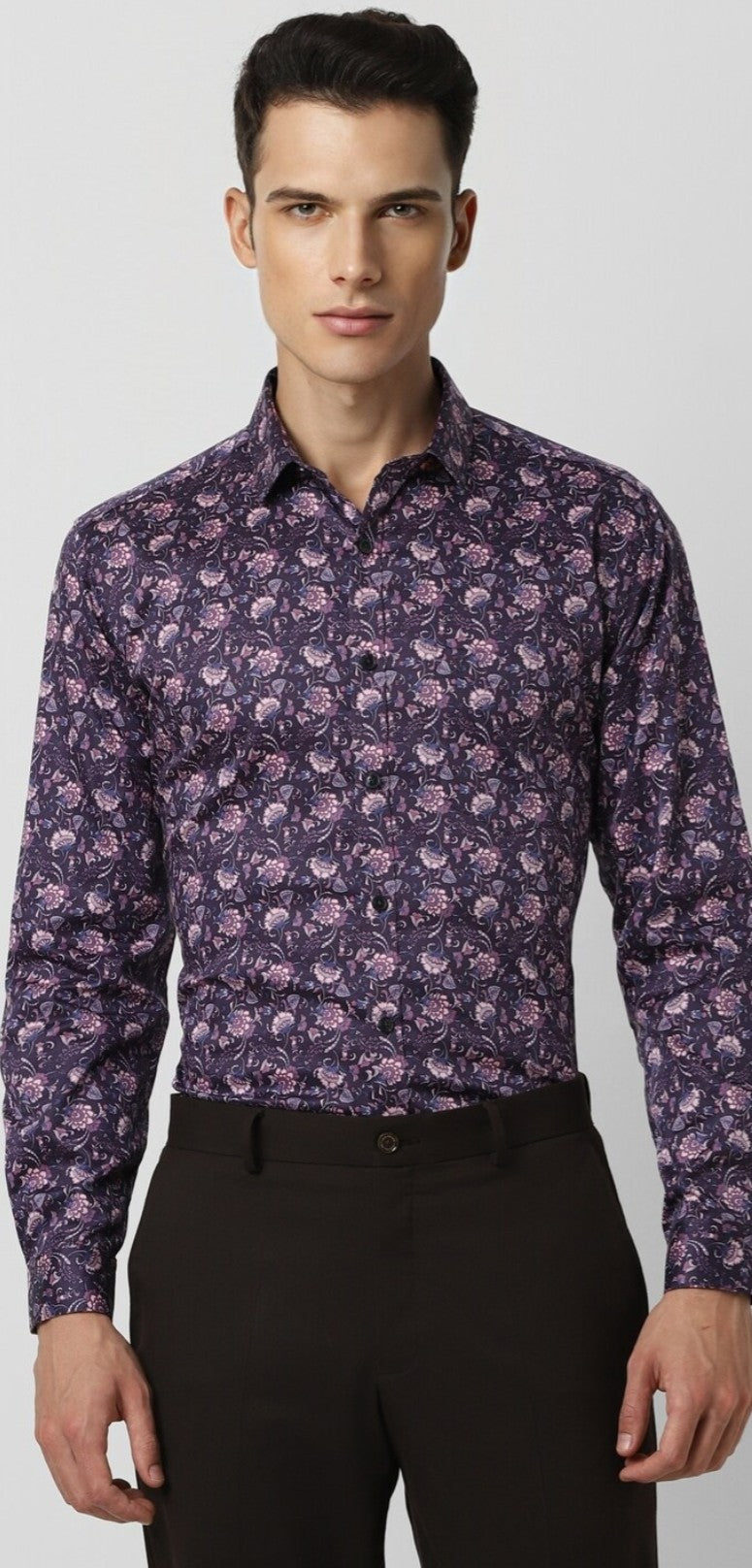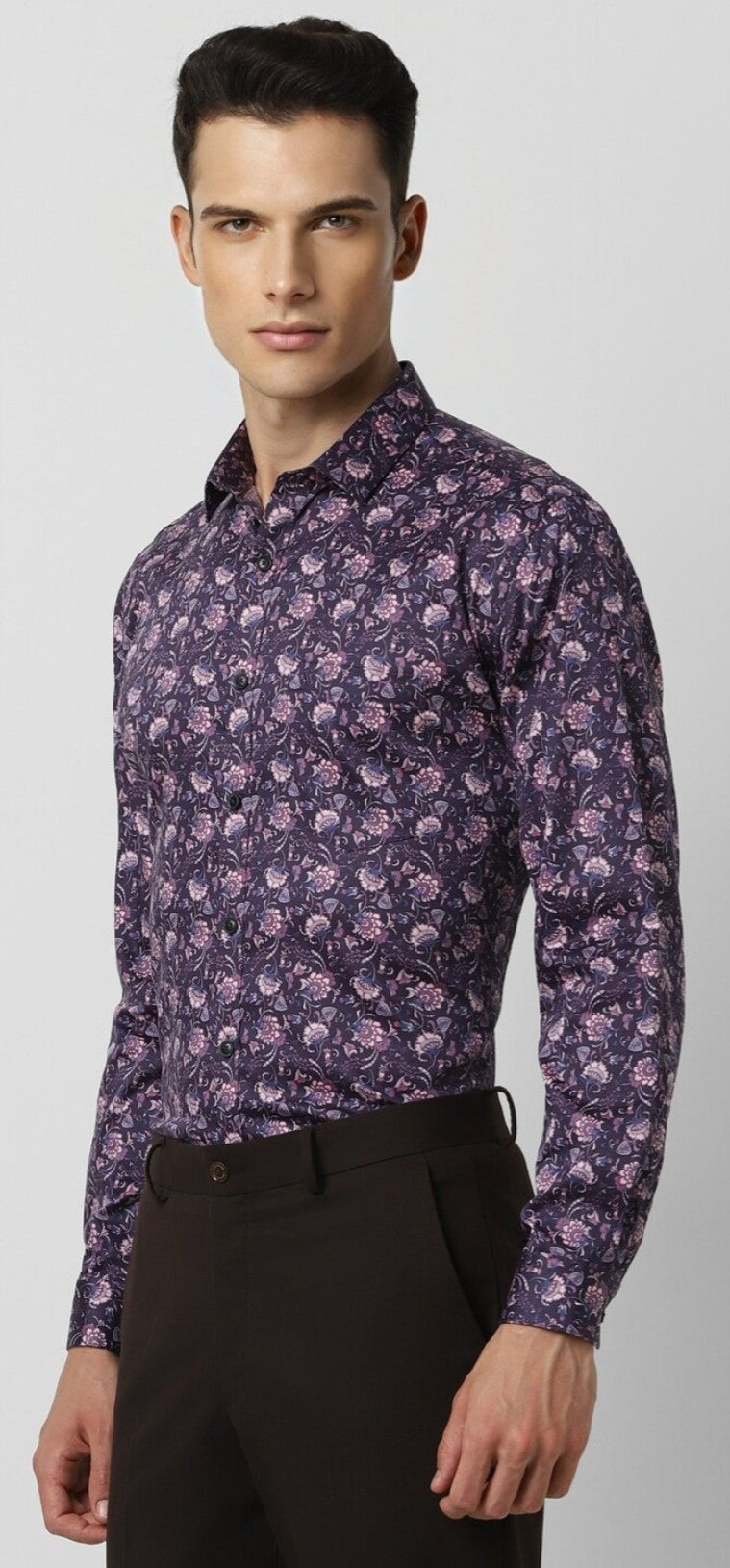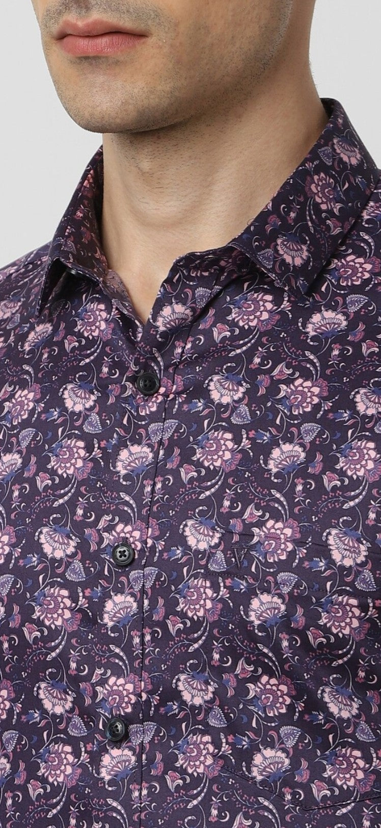 Elevate your party style with the slim-fit V Dot shirt, crafted from a premium blend of cotton, lyocell, and spandex. This striking purple shirt features an eye-catching print and full sleeves for an effortlessly stylish look.