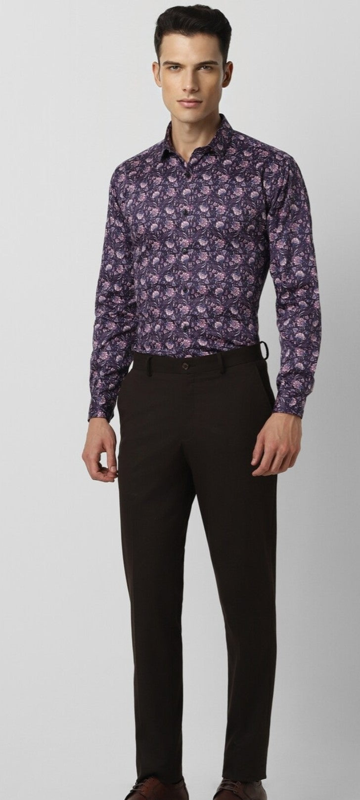 MEN PURPLE SLIM FIT PRINT FULL SLEEVES PARTY SHIRT