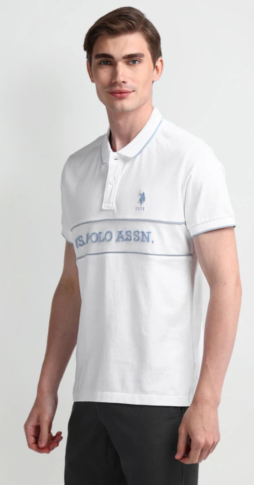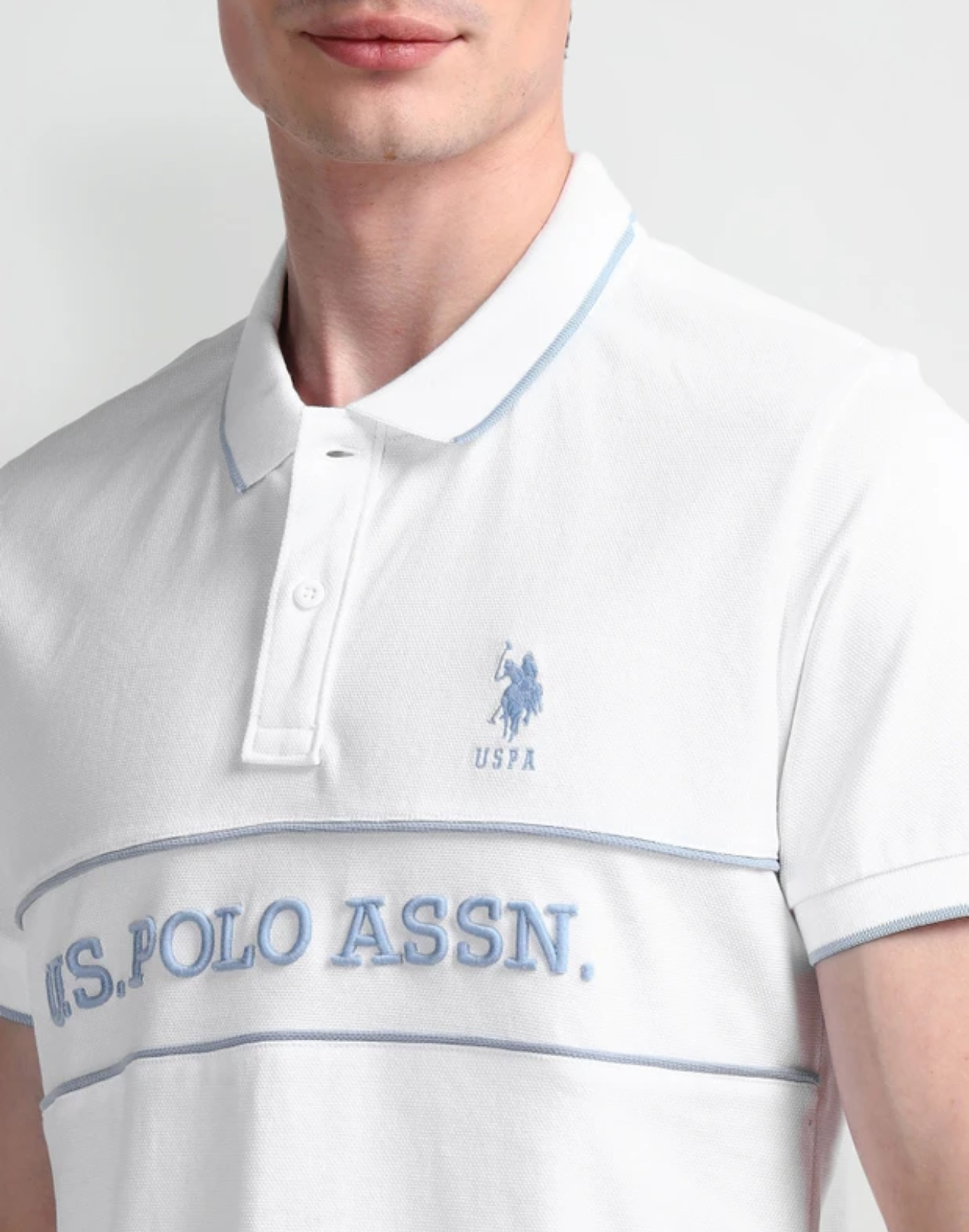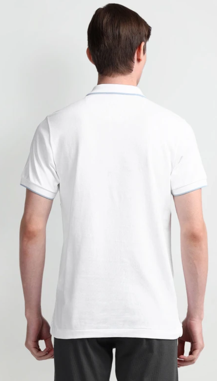 Men Striped Polo Neck Pure Cotton White T-Shirt