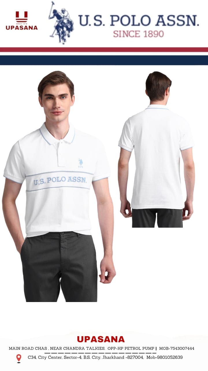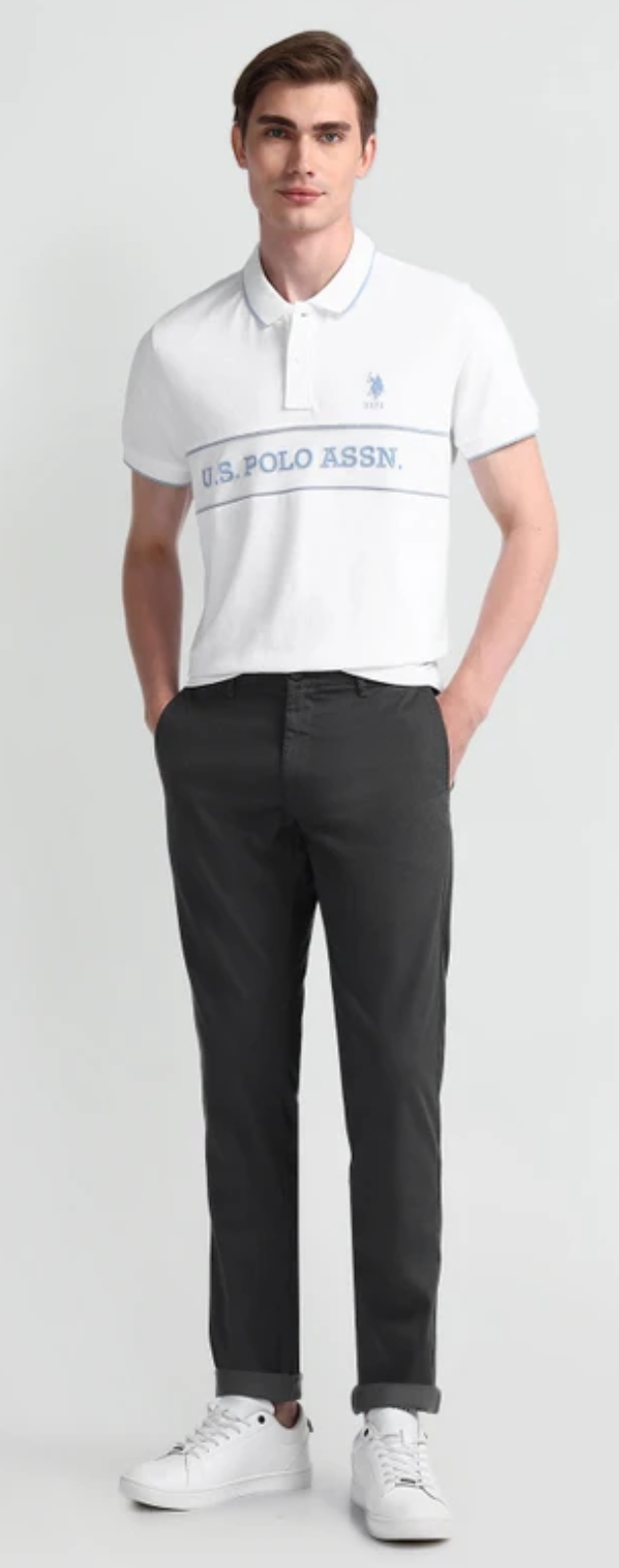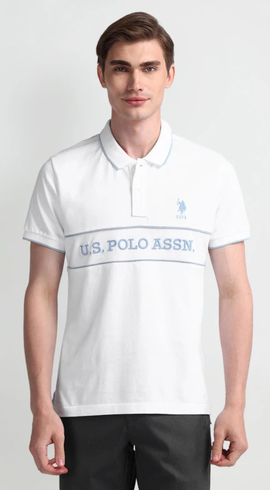 Men Striped Polo Neck Pure Cotton White T-Shirt