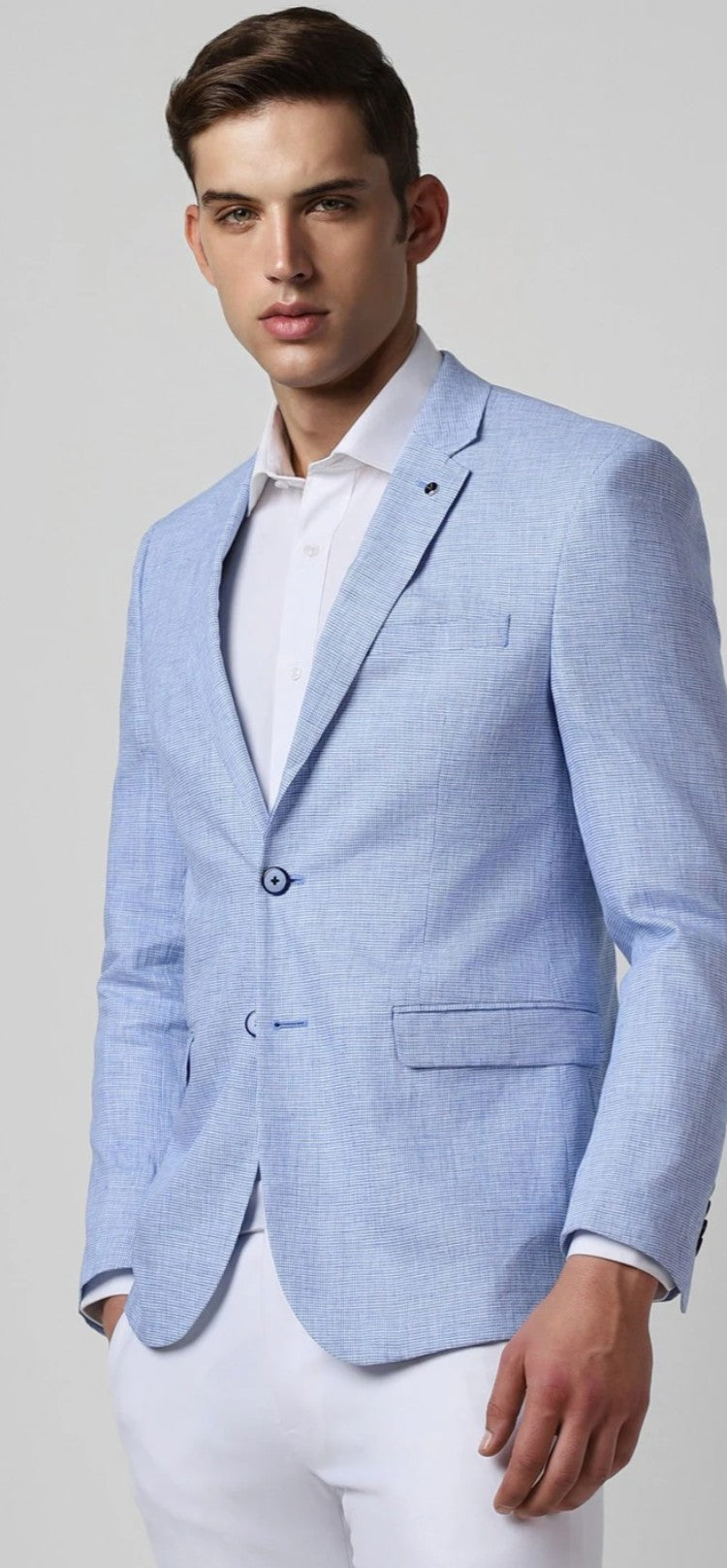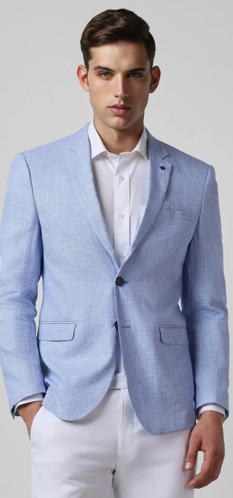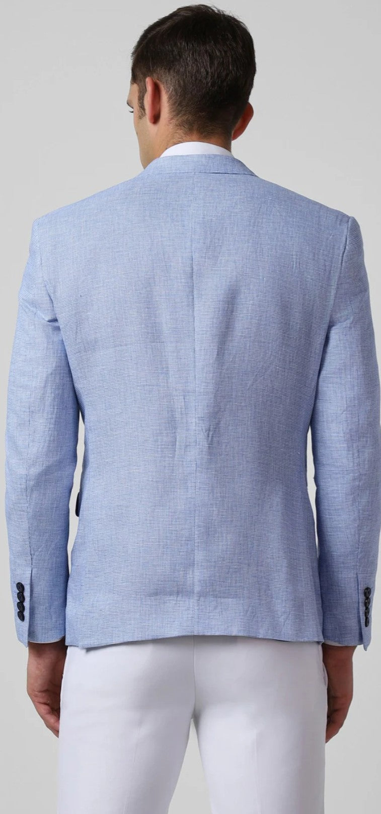 Elevate your formal attire with the Van Heusen blue check blazer. Crafted from luxurious linen, this slim fit piece combines sophisticated style with breathable comfort, making it perfect for any formal occasion.