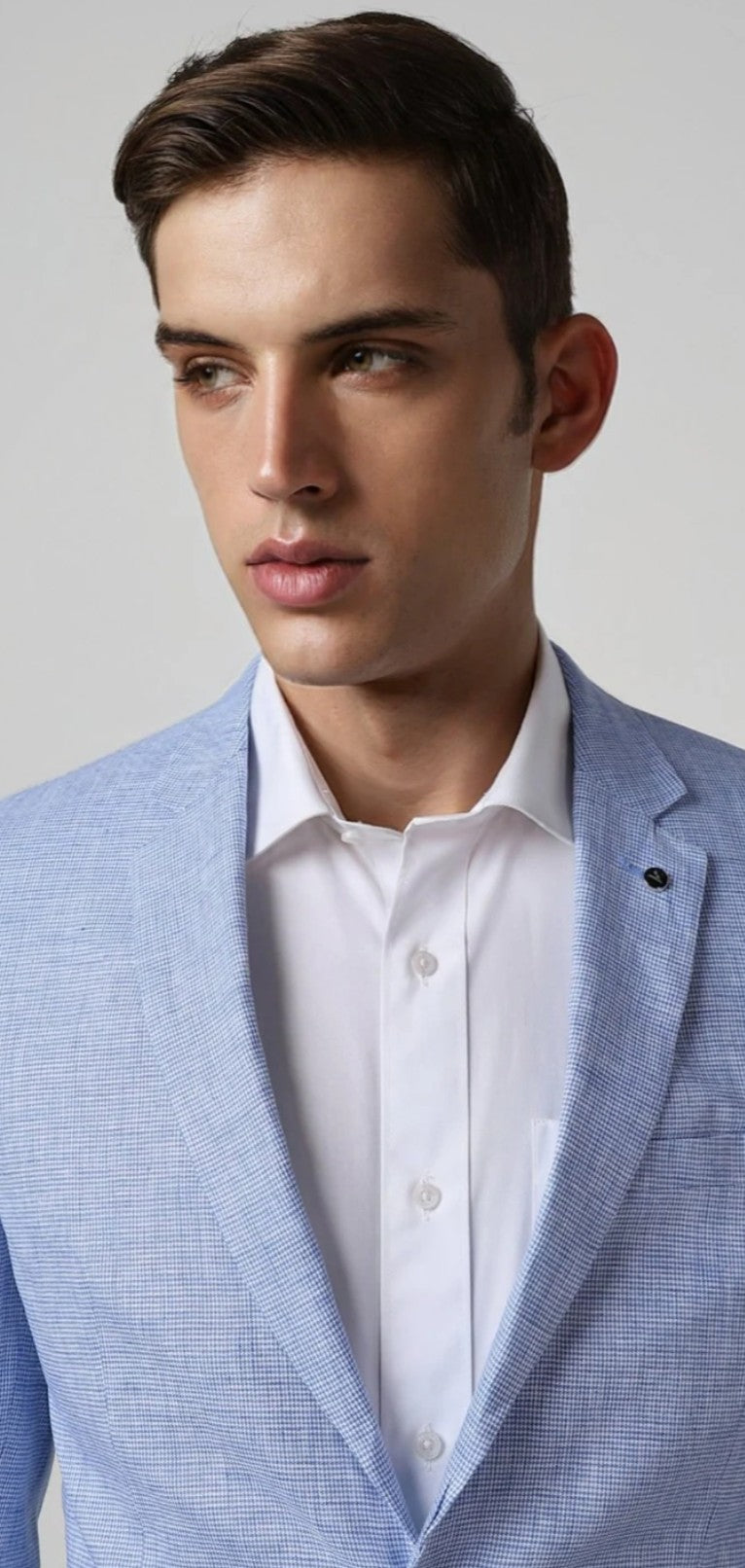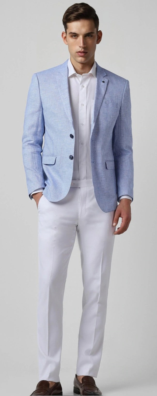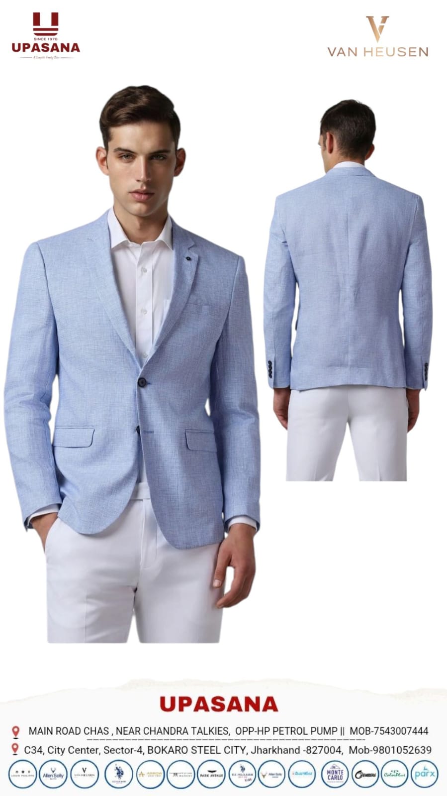 Elevate your formal attire with the Van Heusen blue check blazer. Crafted from luxurious linen, this slim fit piece combines sophisticated style with breathable comfort, making it perfect for any formal occasion.