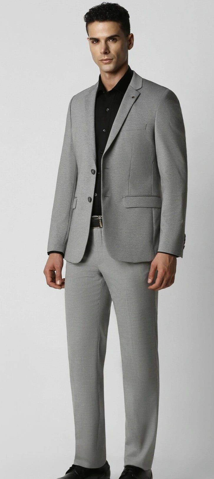 MEN GREY TEXTURED SUPER SLIM FIT FORMAL BLAZER