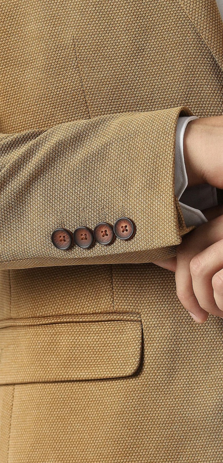 MEN KHAKI TEXTURED SLIM FIT FORMAL BLAZER