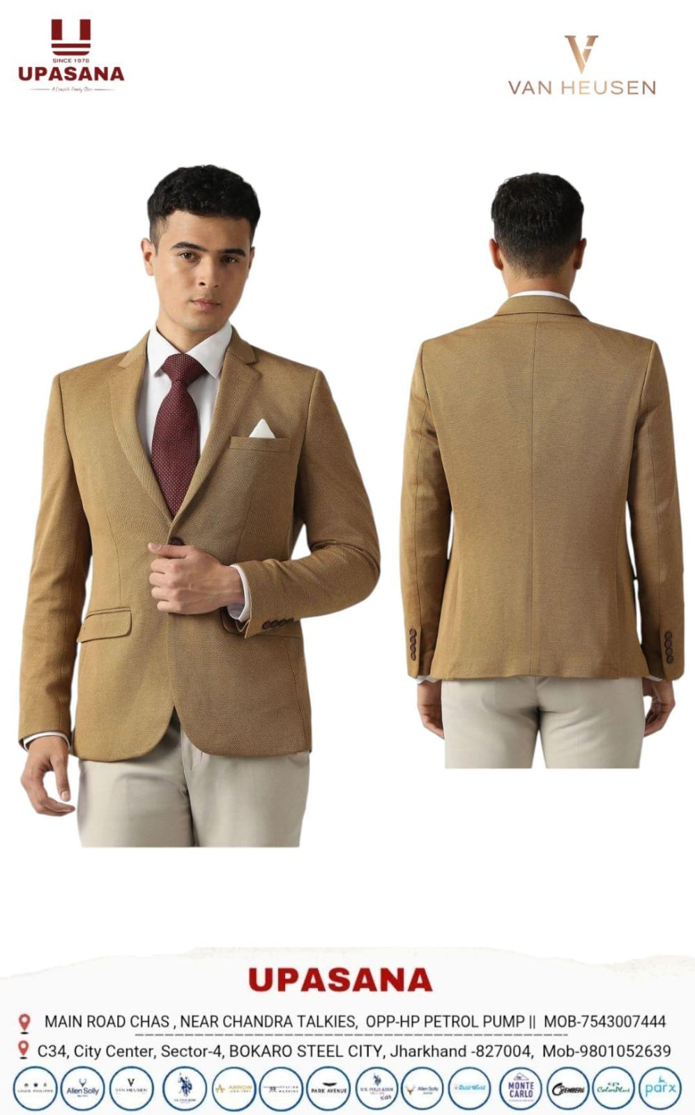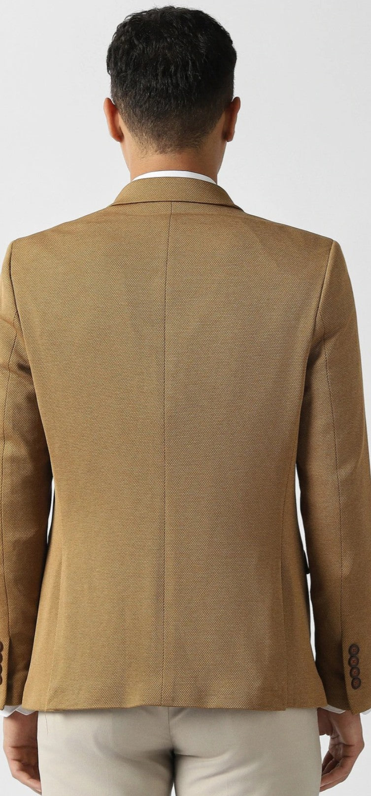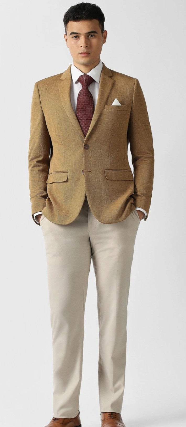 Elevate your formal wardrobe with the Van Heusen Move blazer in a sophisticated Khaki. This ultra-slim fit design features a textured pattern, crafted from a premium blend of polyester, rayon, and spandex for ultimate comfort and style.