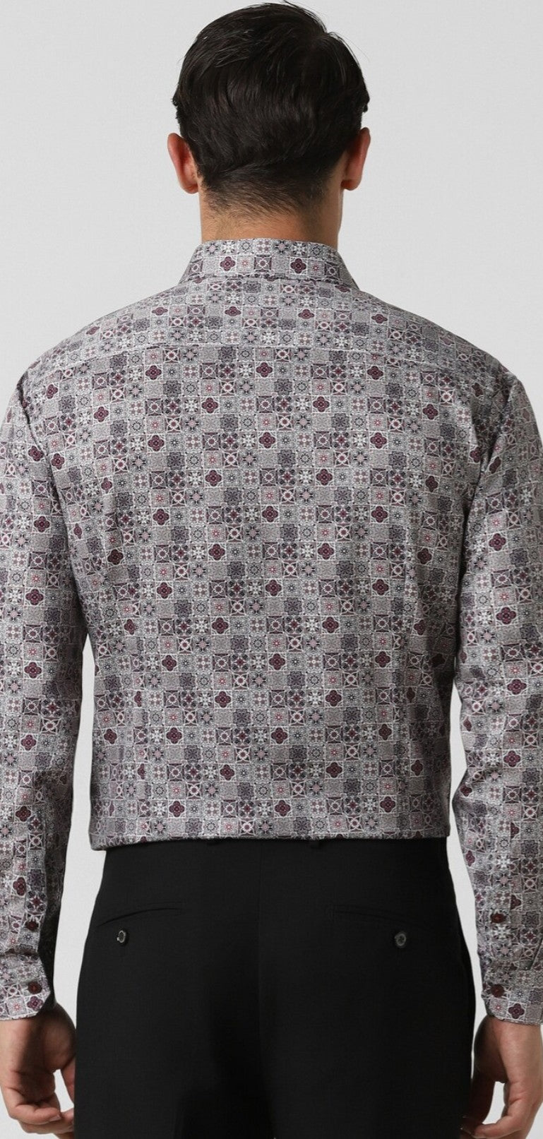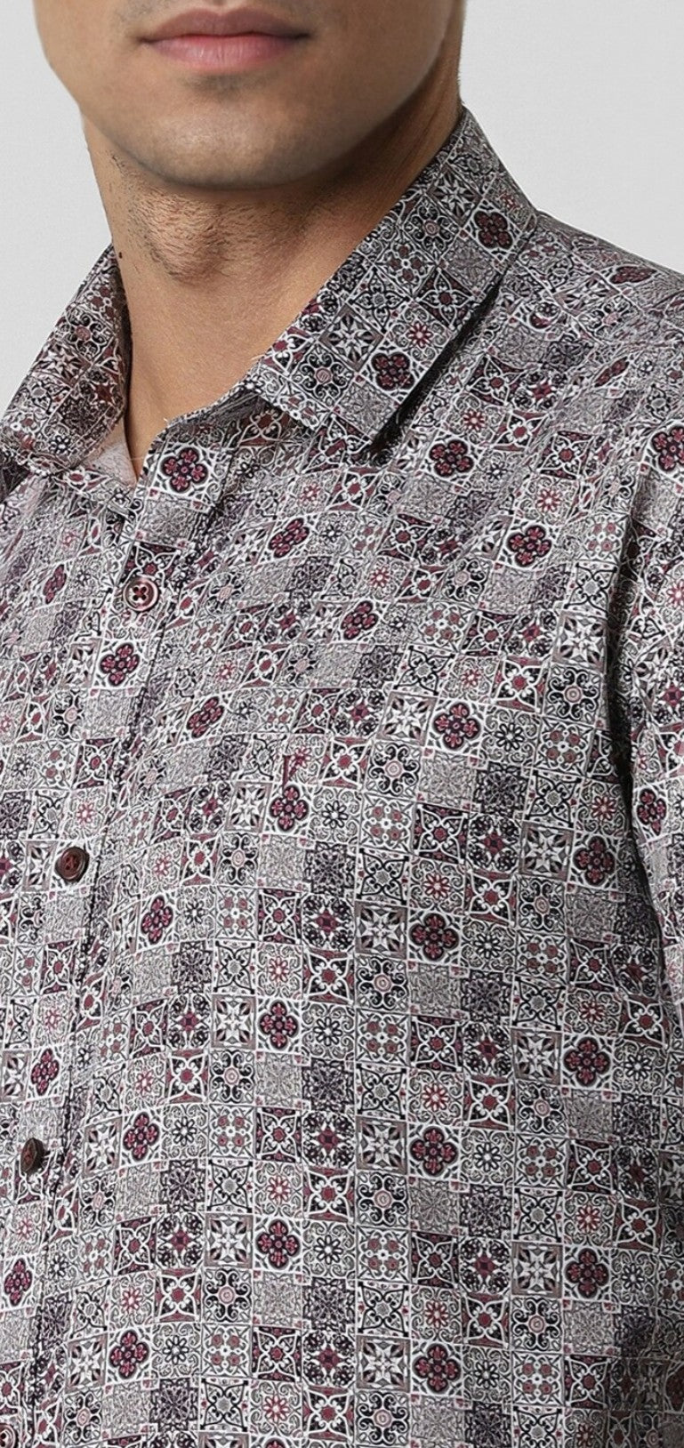 MEN GREY SLIM FIT PRINT FULL SLEEVES PARTY SHIRT
