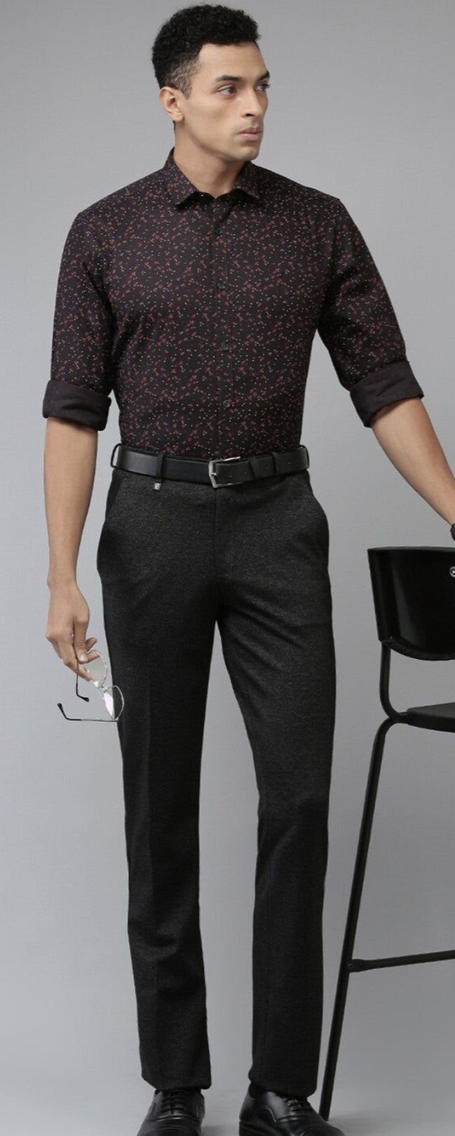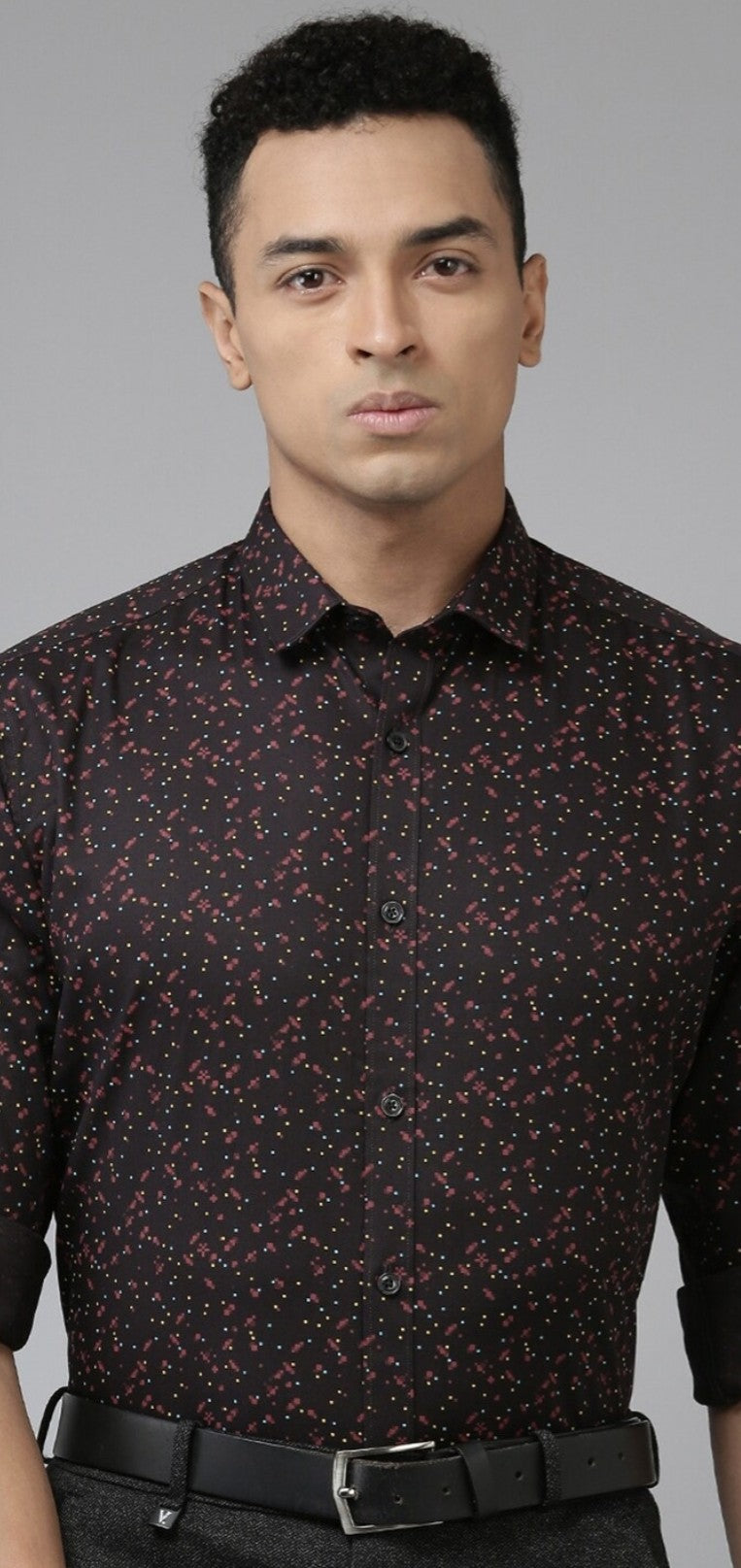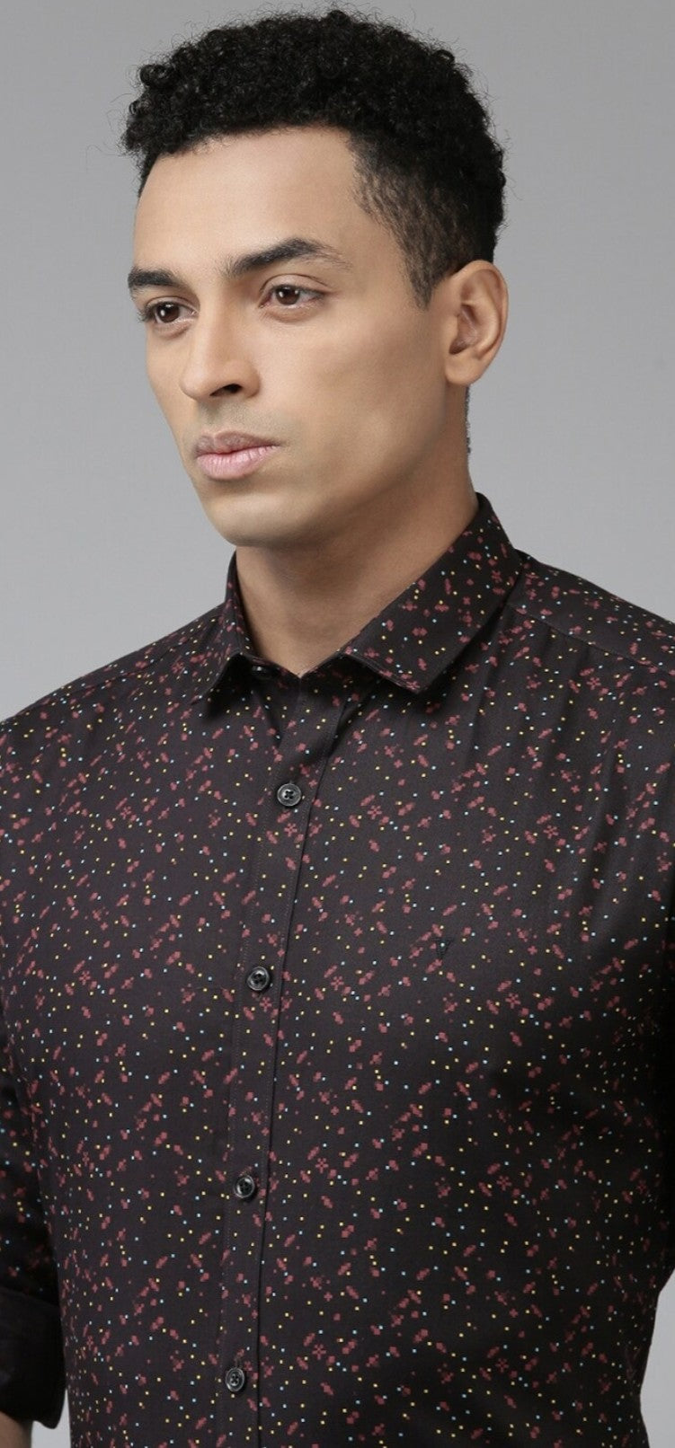 MEN BLACK SLIM FIT PRINT FULL SLEEVES PARTY SHIRT