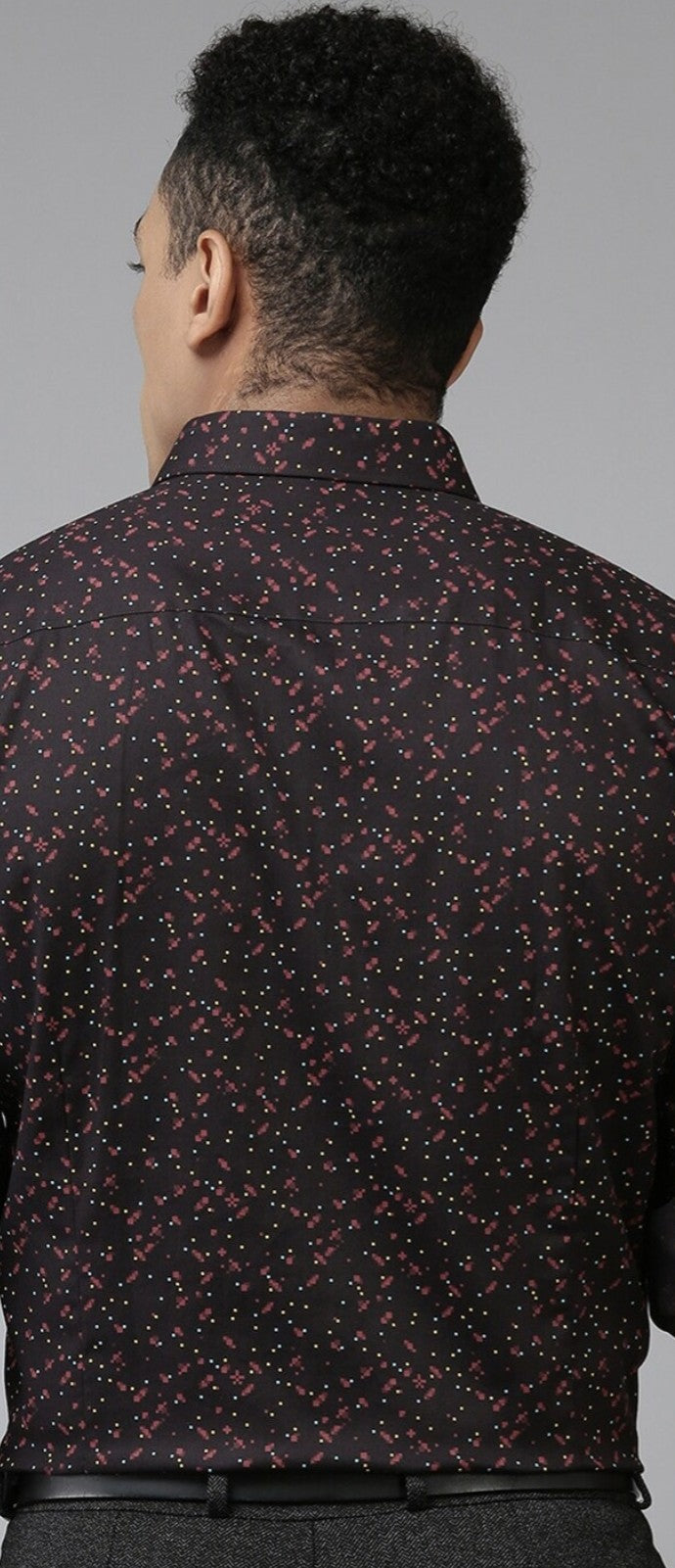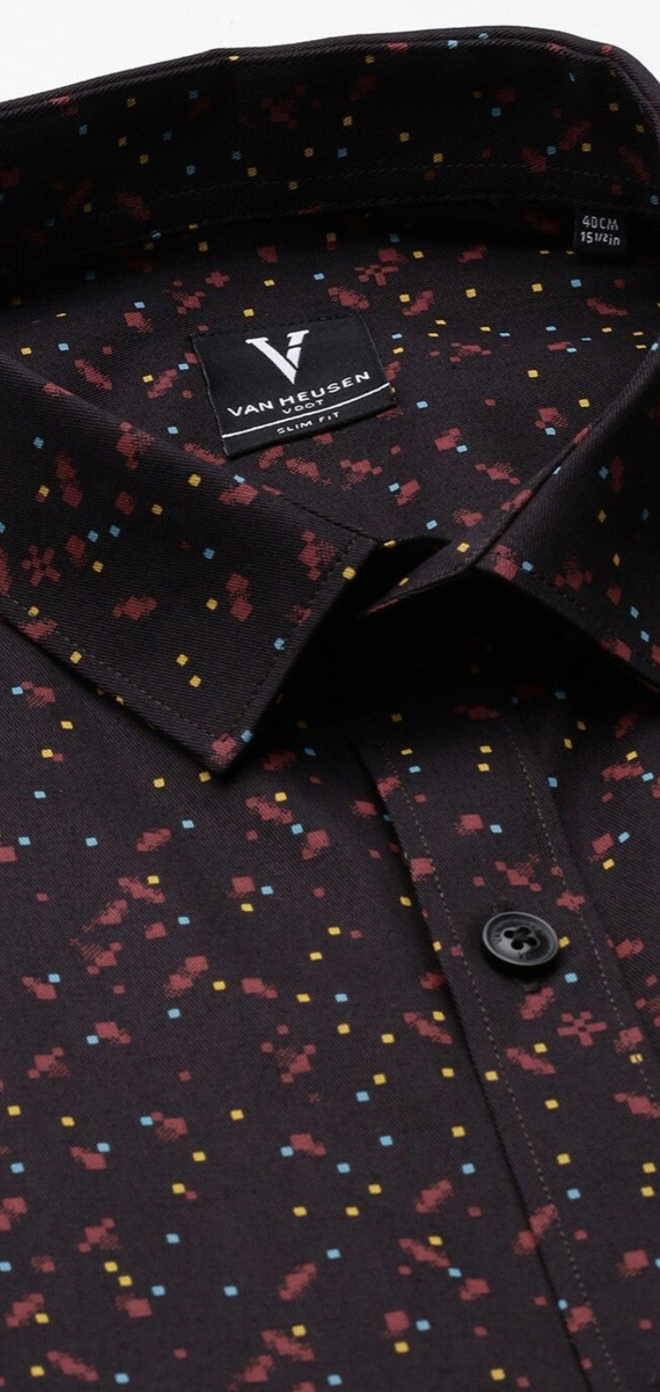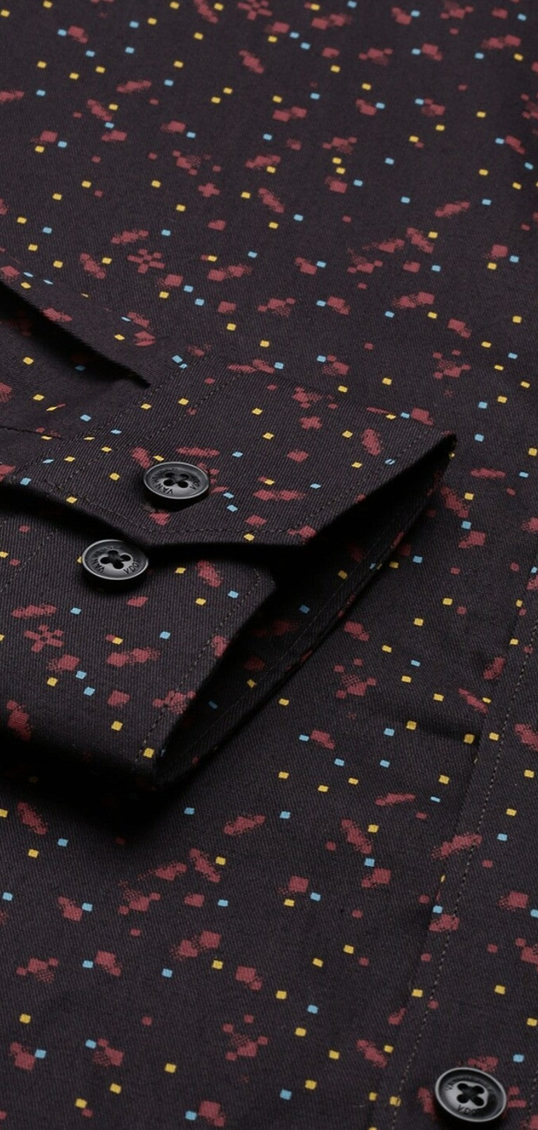 Elevate your party wardrobe with the V Dot Black Printed Shirt. Crafted from soft cotton, it offers a slim fit that enhances your silhouette while ensuring comfort.
