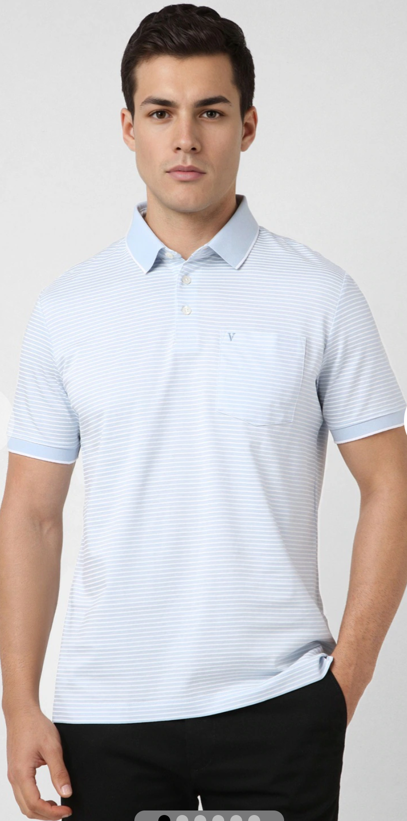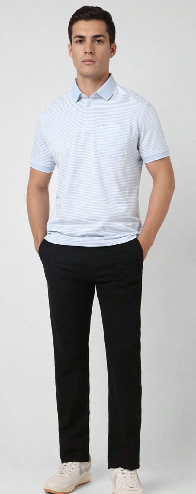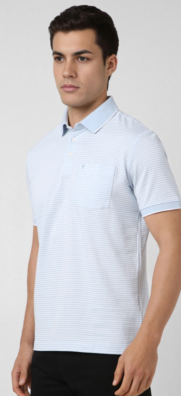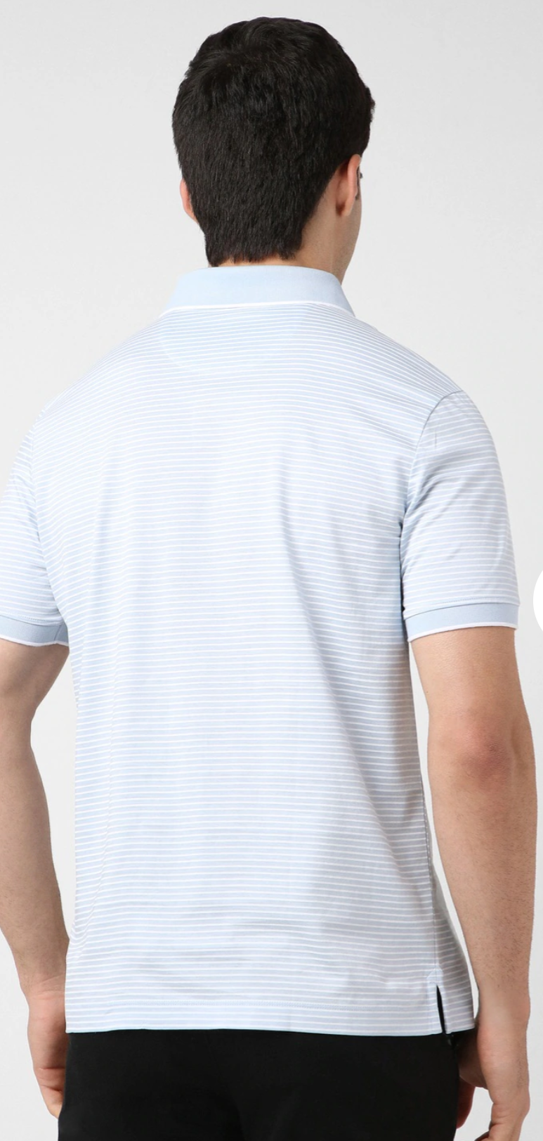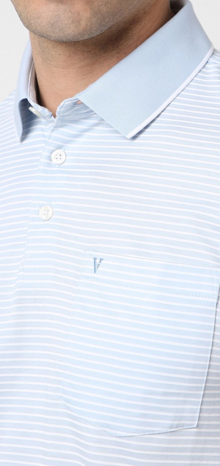 MEN LIGHT BLUE STRIPE POLO NECK T-SHIRT SLIM FIT