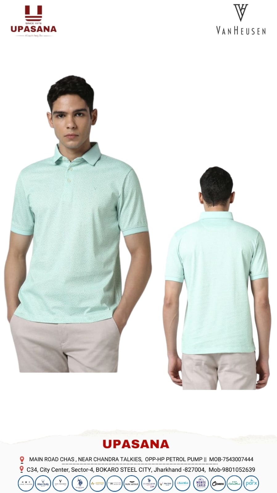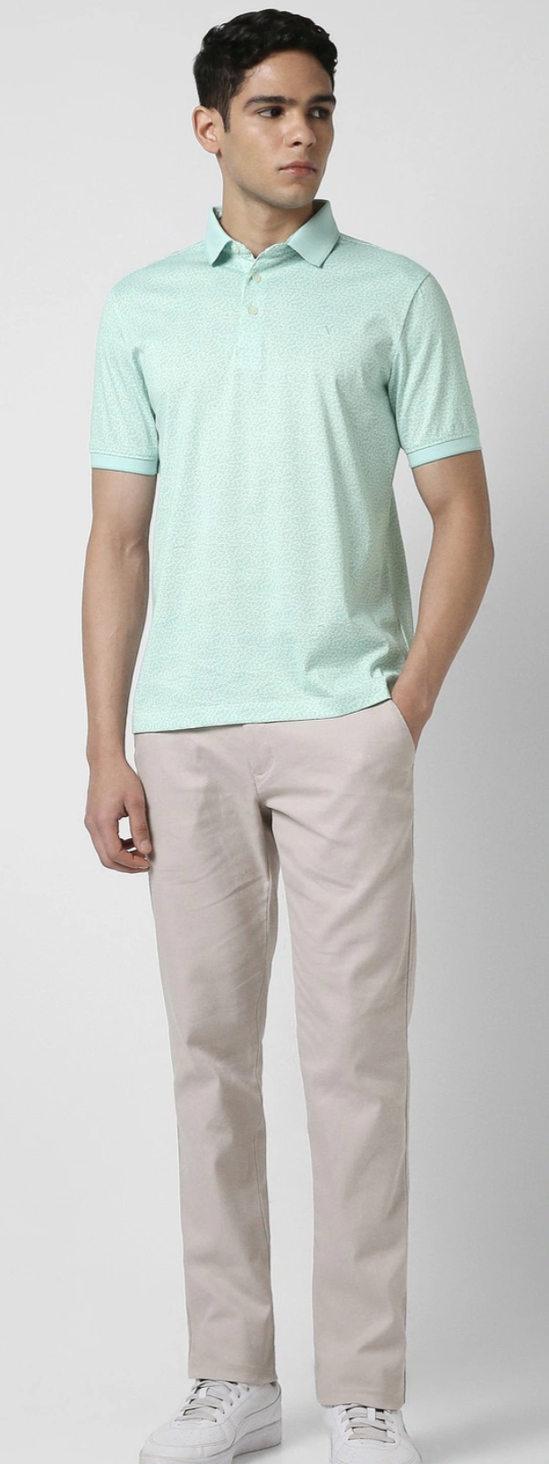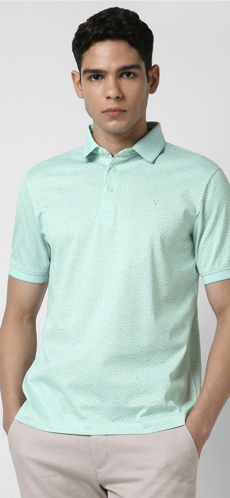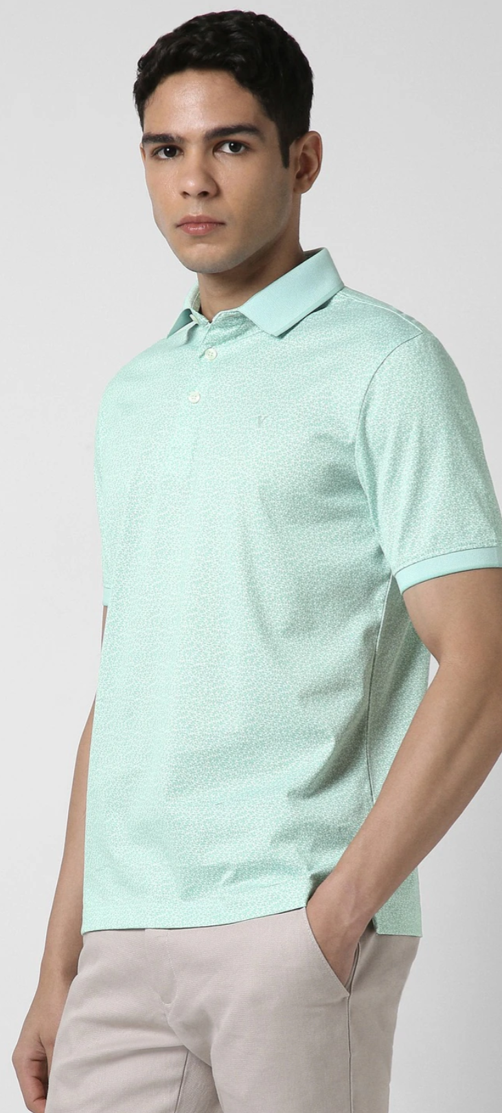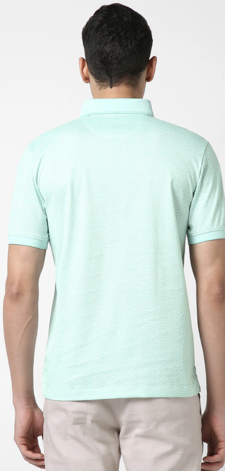 MEN GREEN PRINT POLO NECK T-SHIRT SLIM FIT