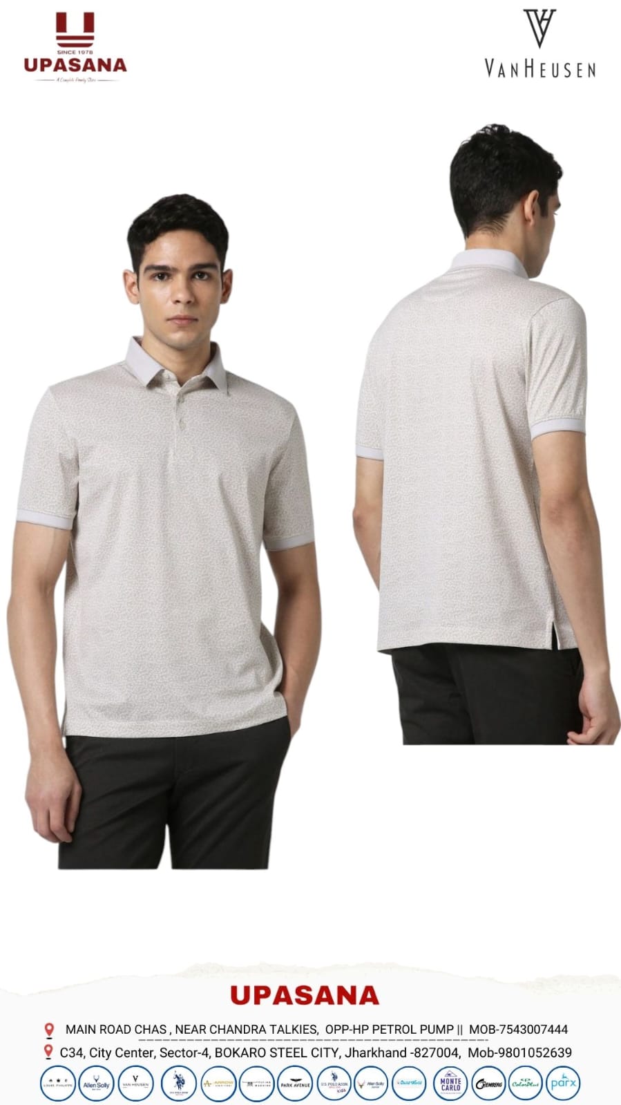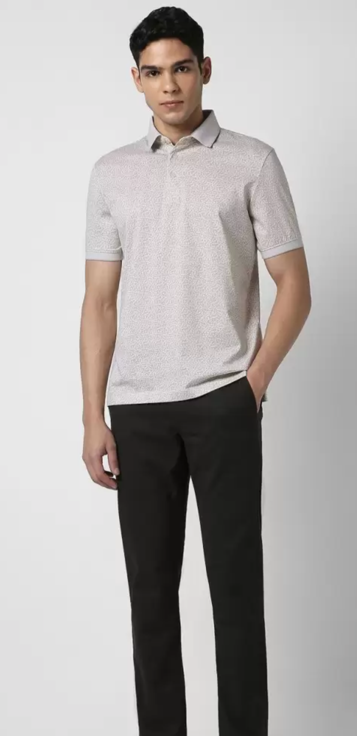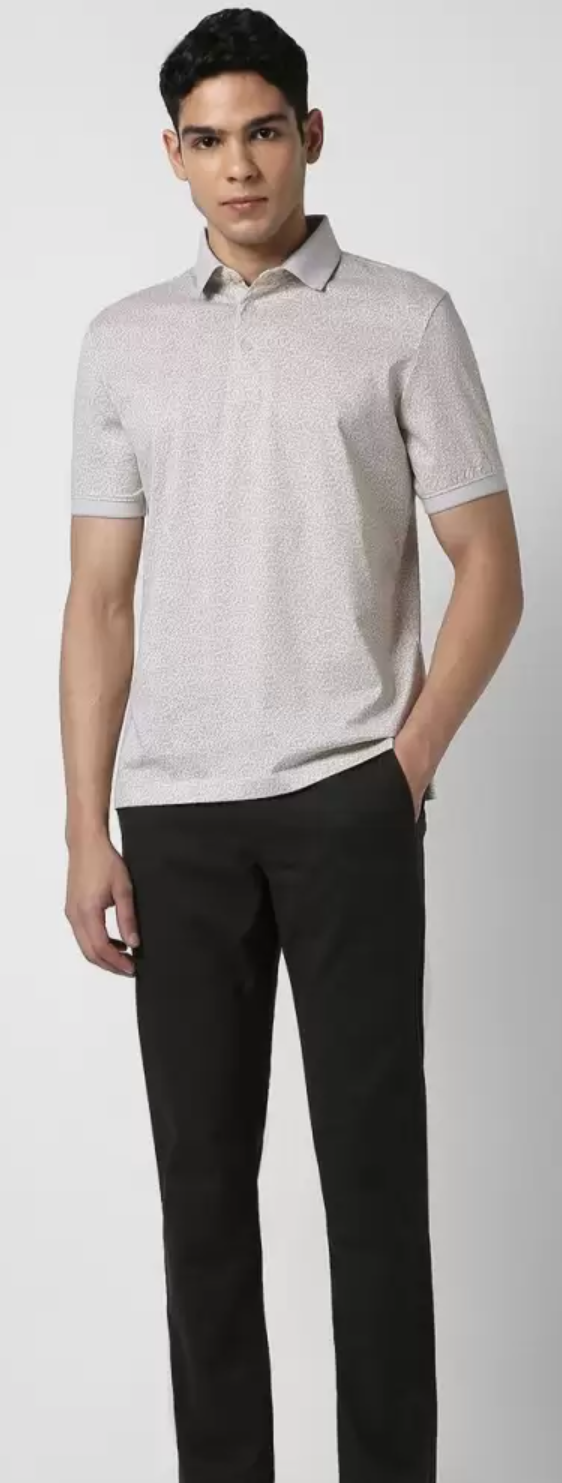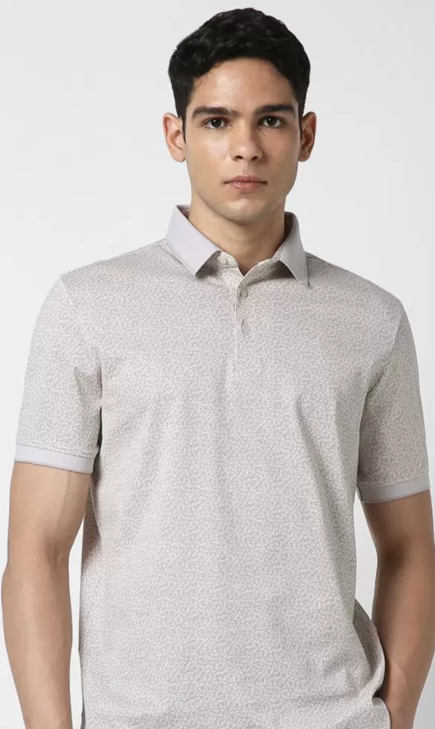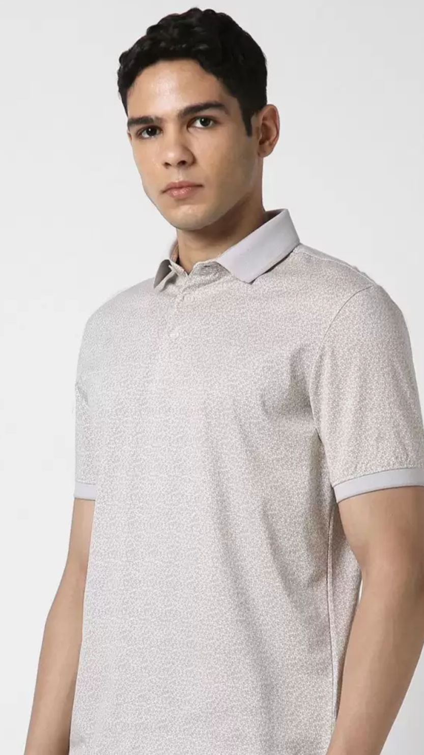 Men Grey Printed Polo T-shirt - SLIM FIT