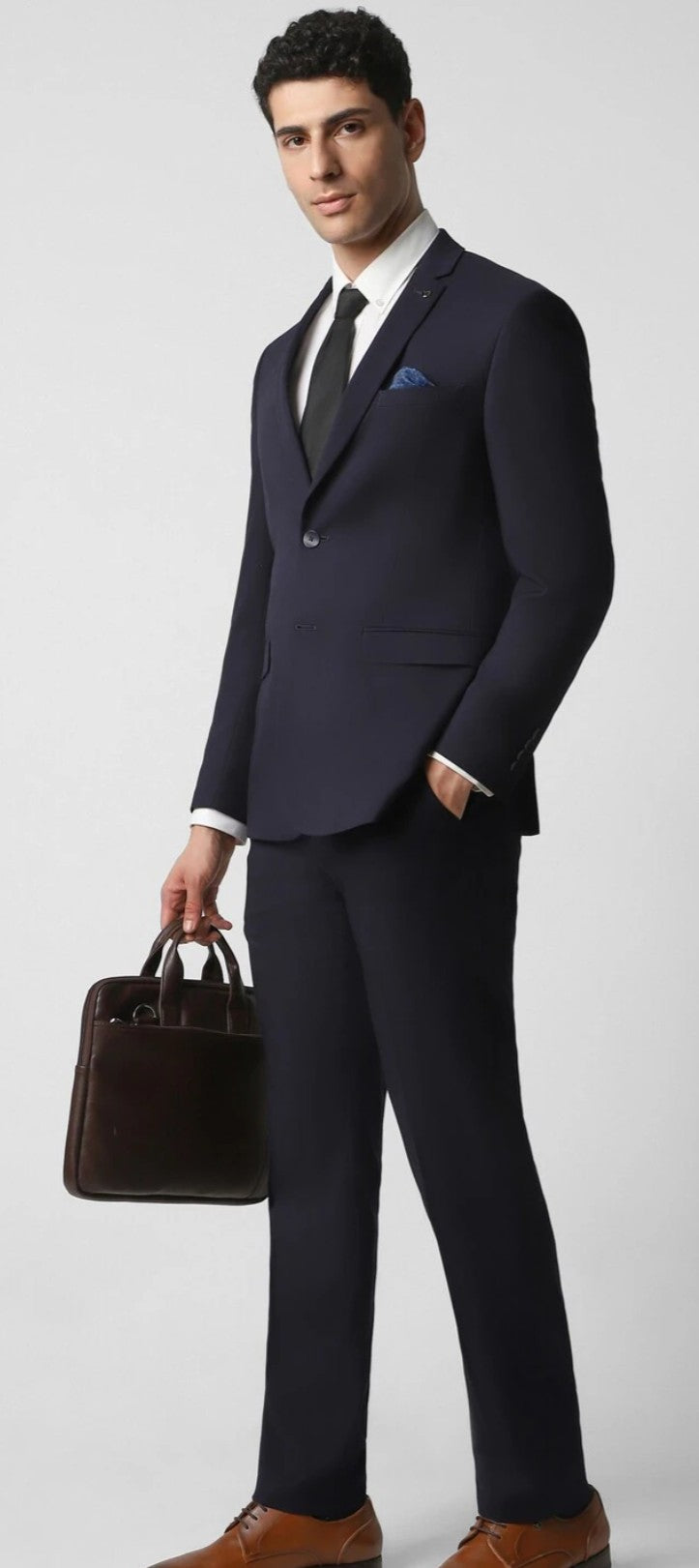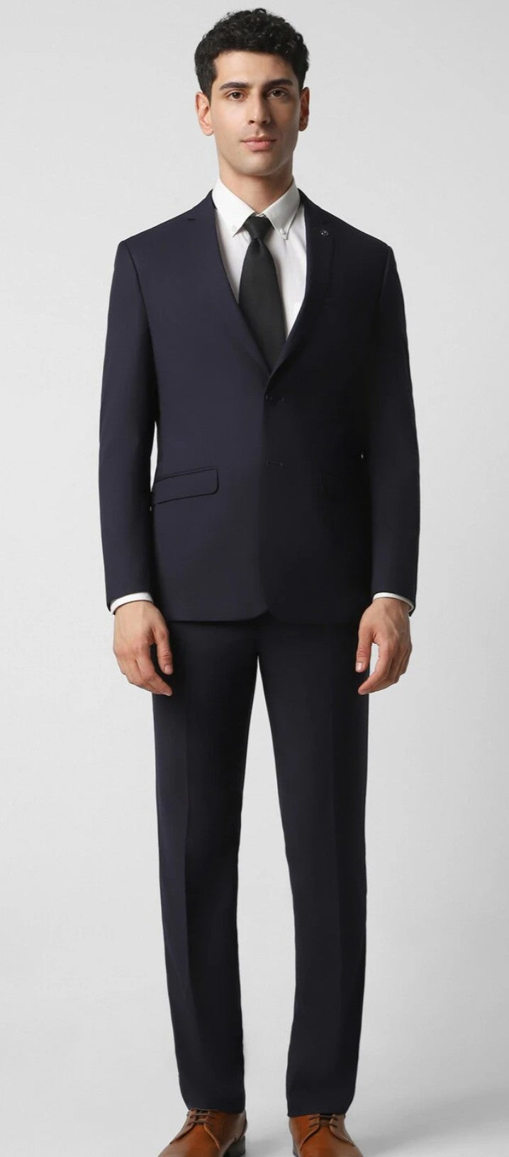 Experience sophistication with the Van Heusen Two-Piece Suit in Navy. Crafted from a premium blend of polyester, rayon, and spandex, this slim-fit suit elevates your formal wardrobe.