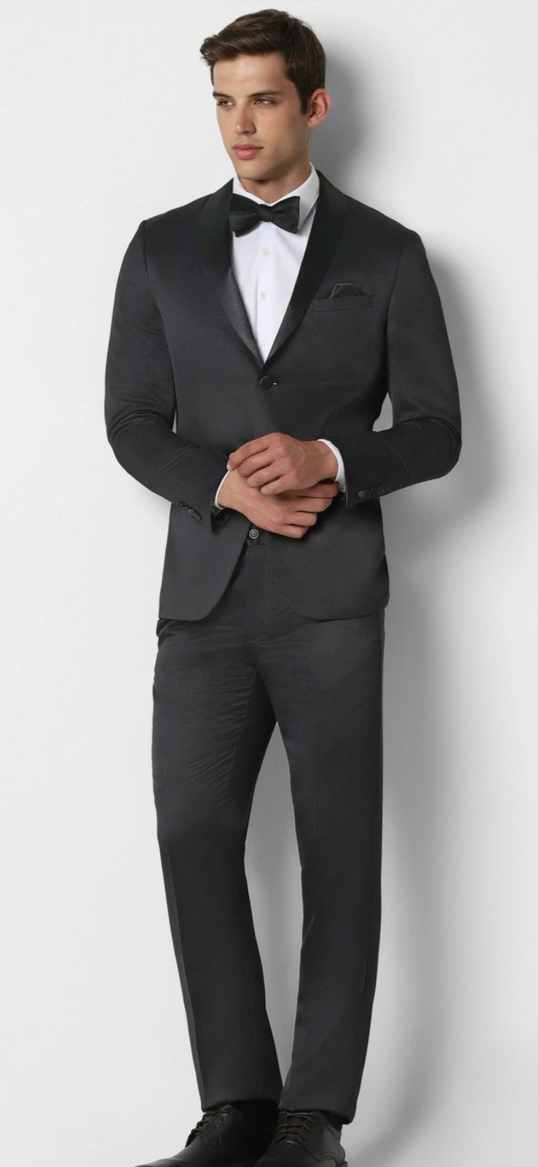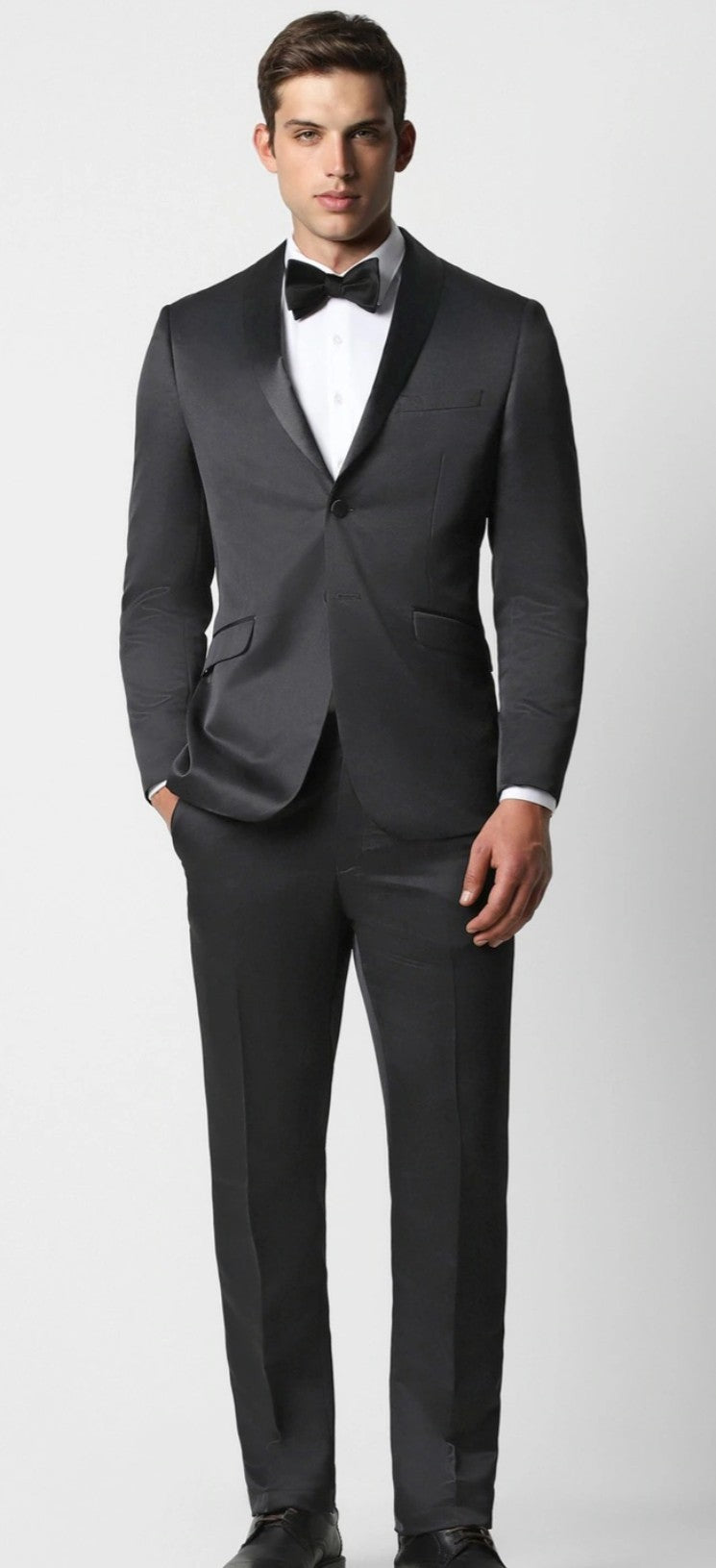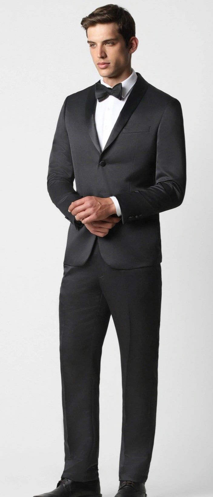 MEN BLACK SOLID SLIM FIT PARTY TWO PIECE SUIT