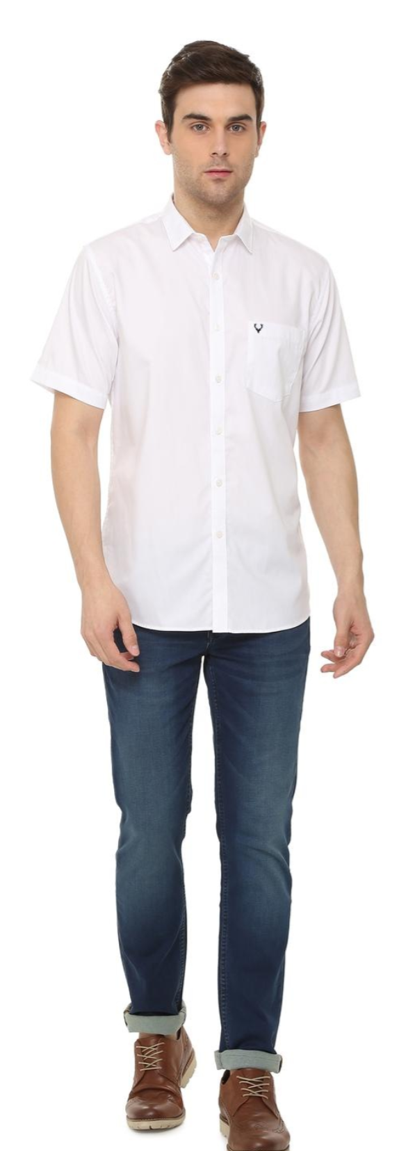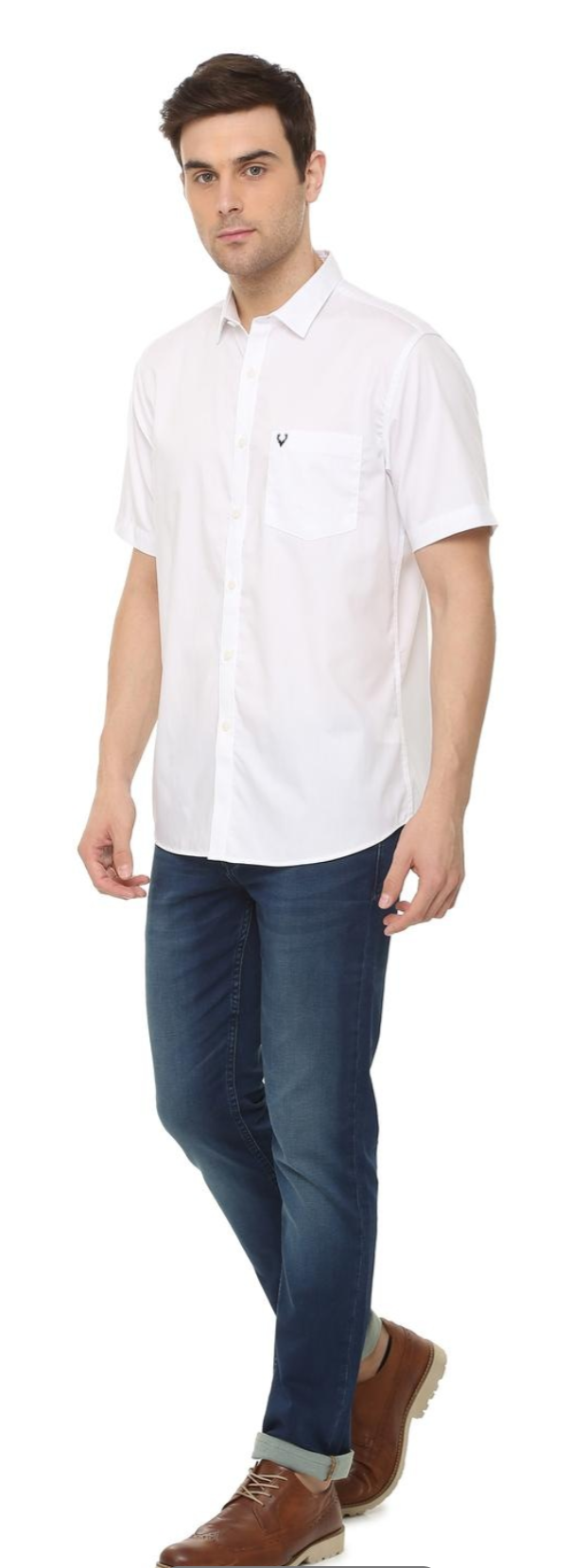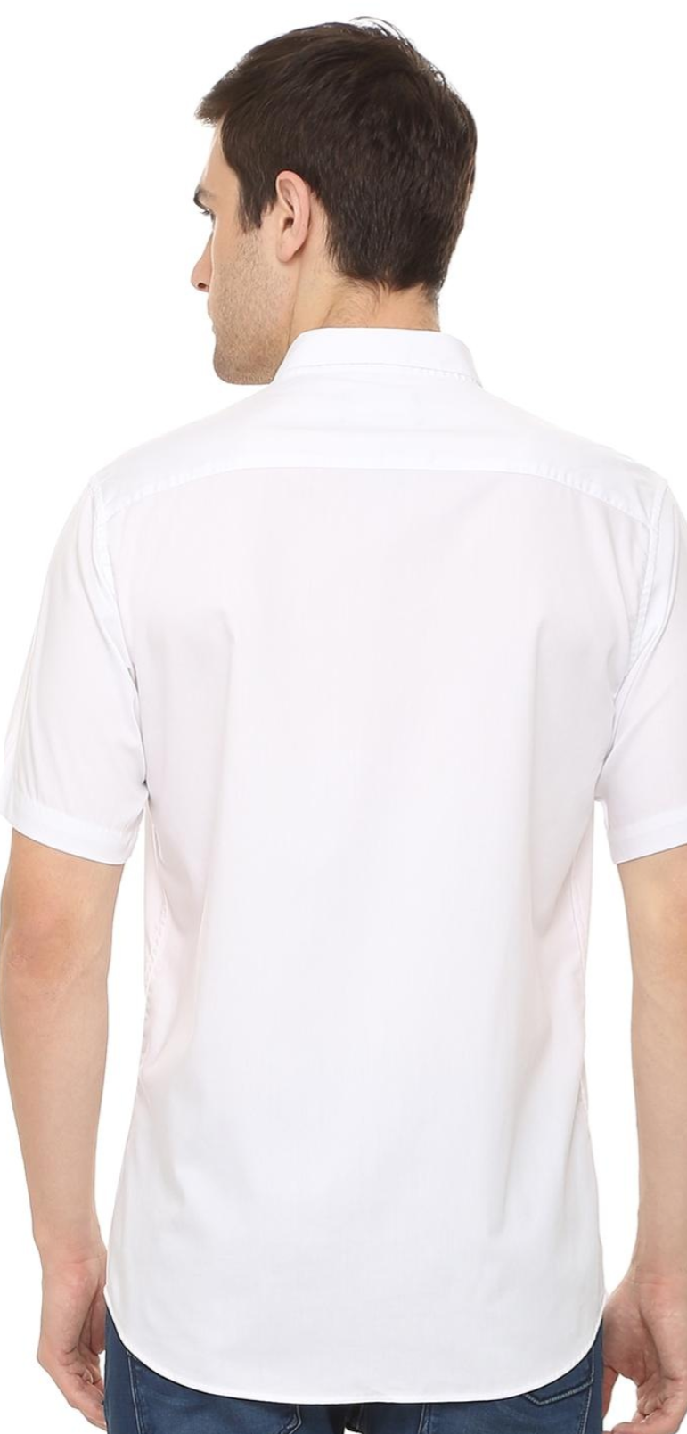 Men White Solid Half Sleeves Classic Fit Casual Shirt