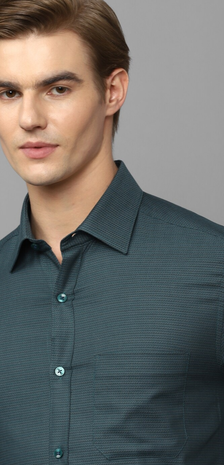 Men Teal Green Classic Fit Self Design Formal Shirt