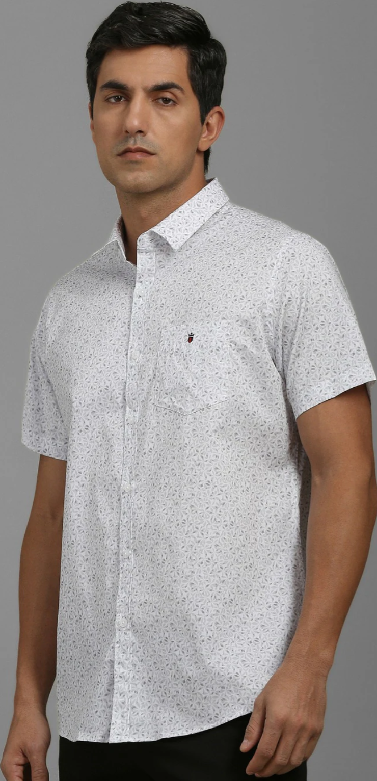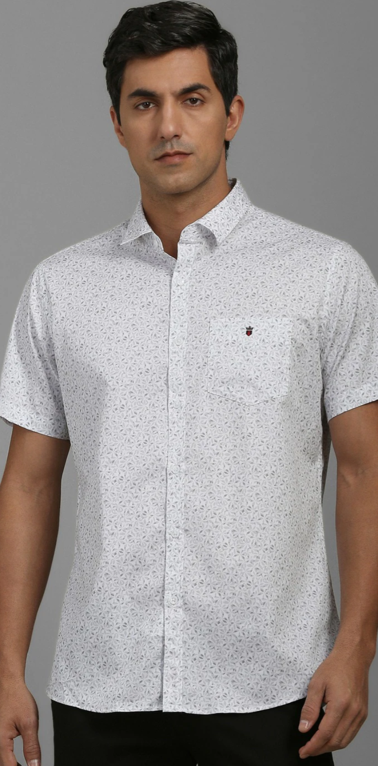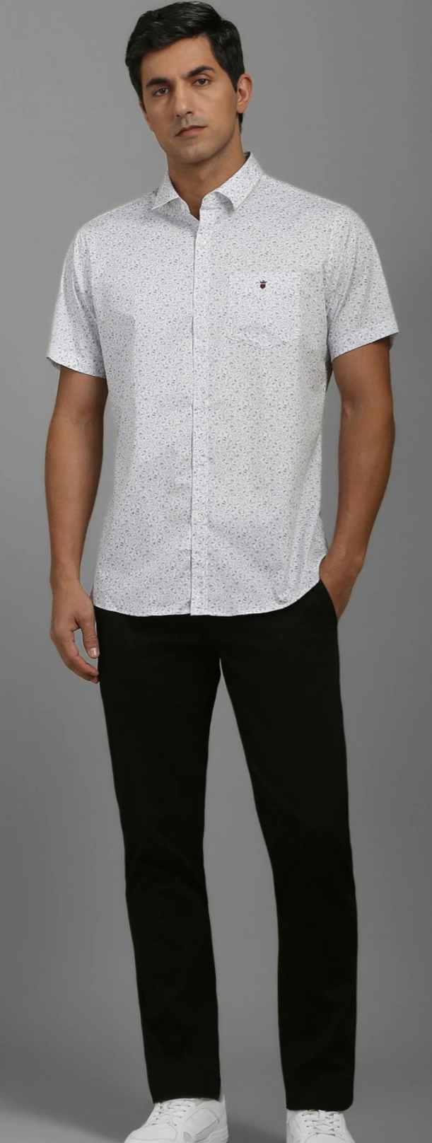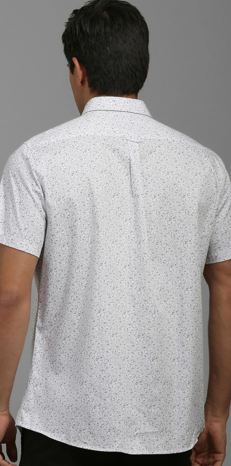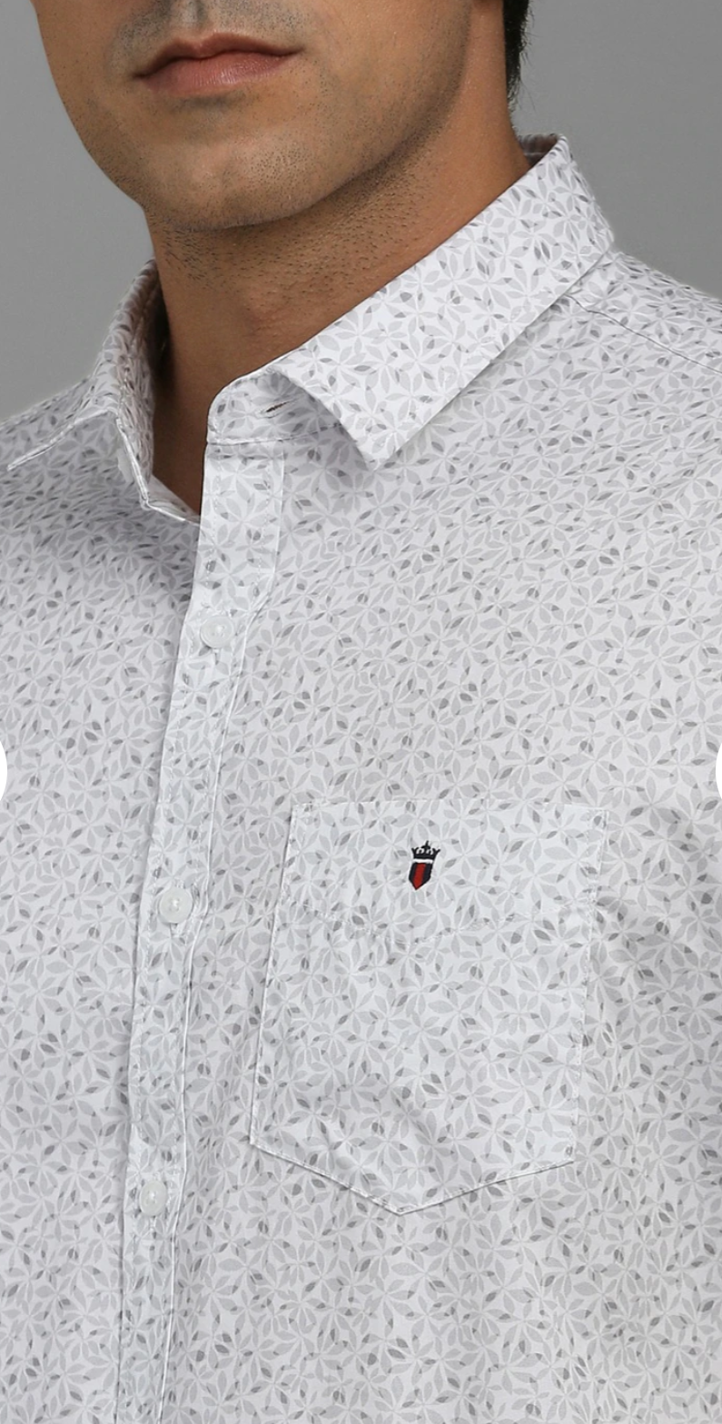 Men White Slim Fit Print Half Sleeves Casual Shirt