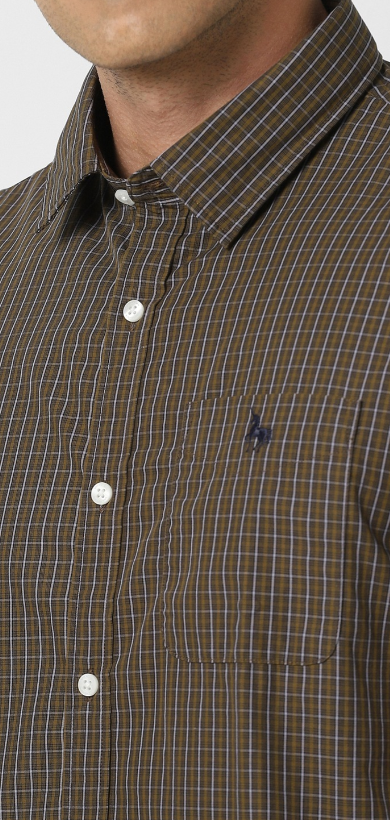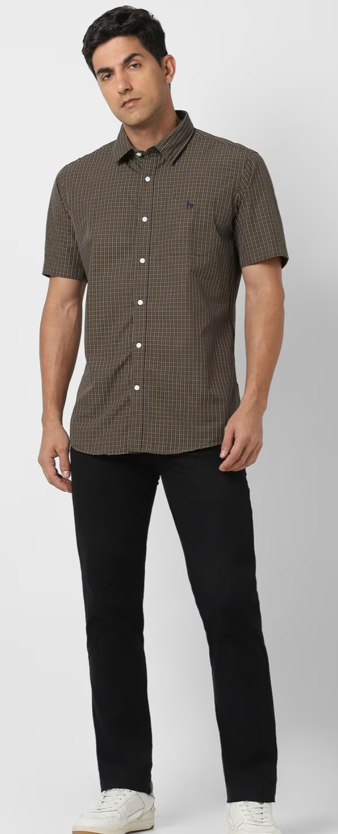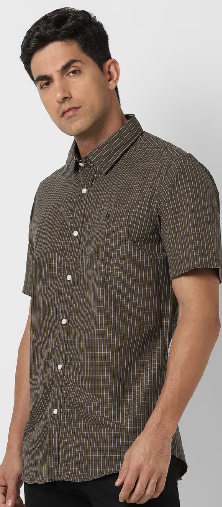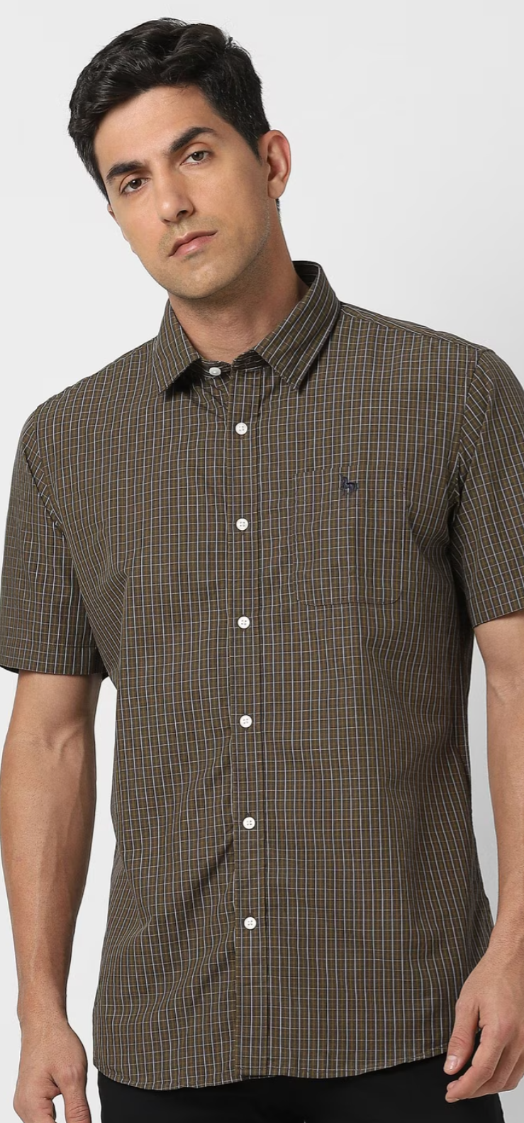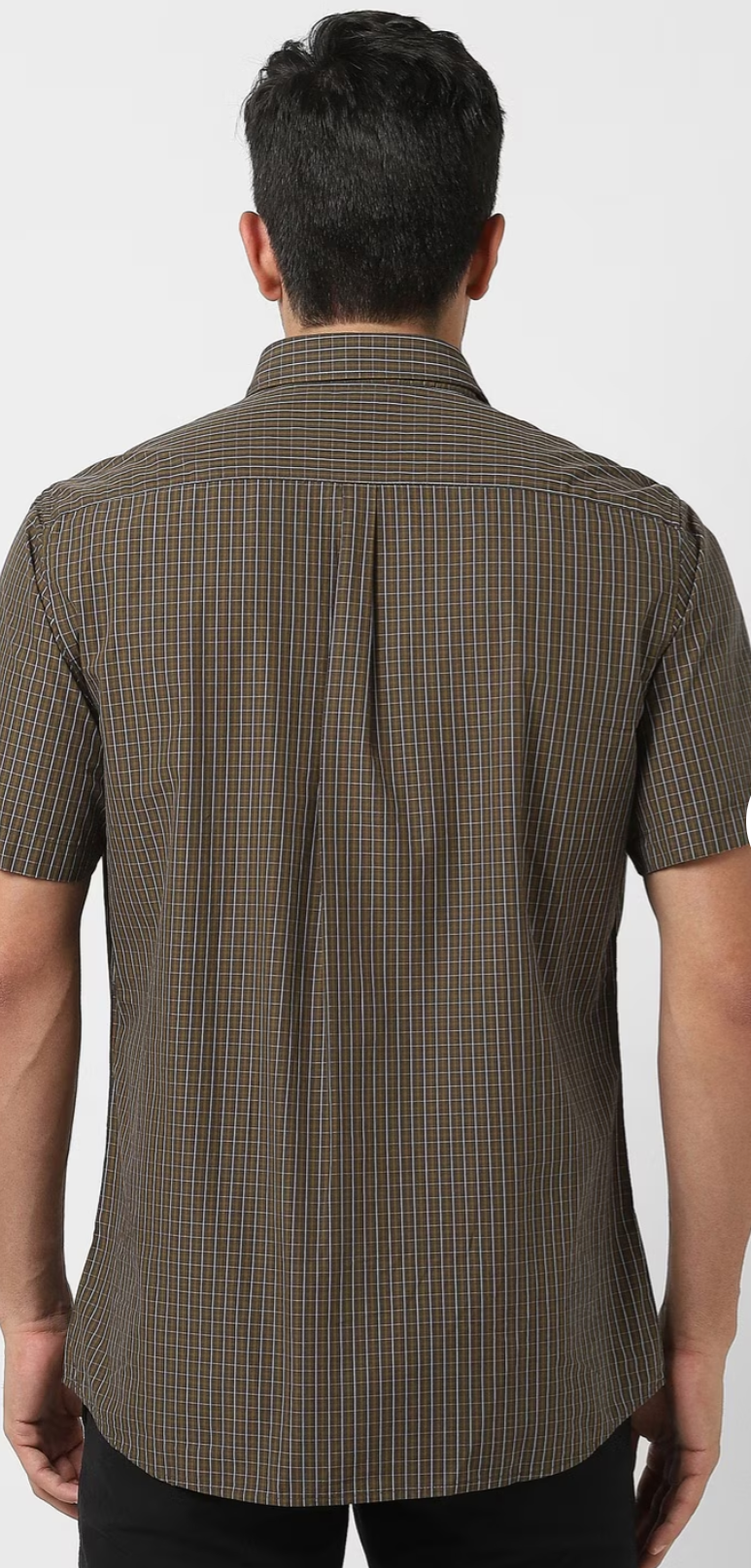 MEN BROWN SLIM FIT CHECK HALF SLEEVES CASUAL SHIRT
