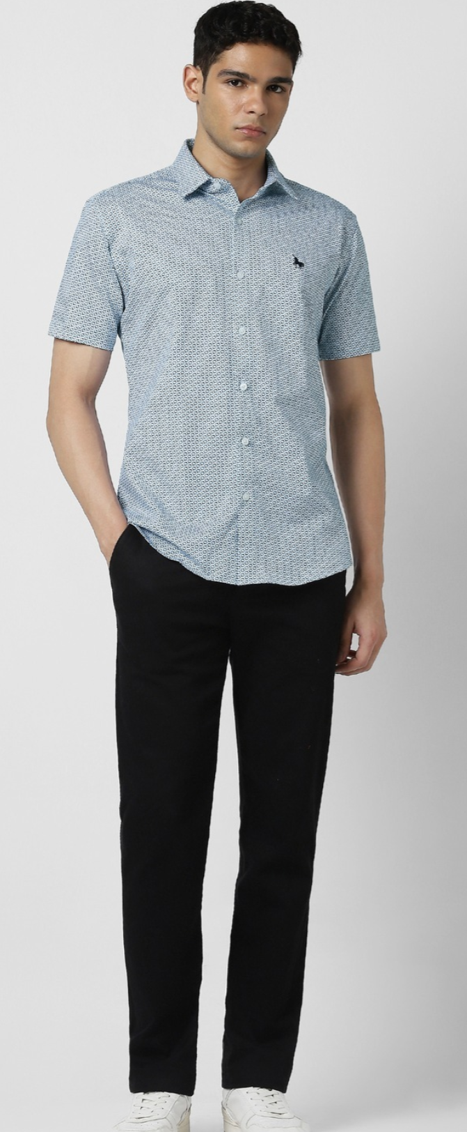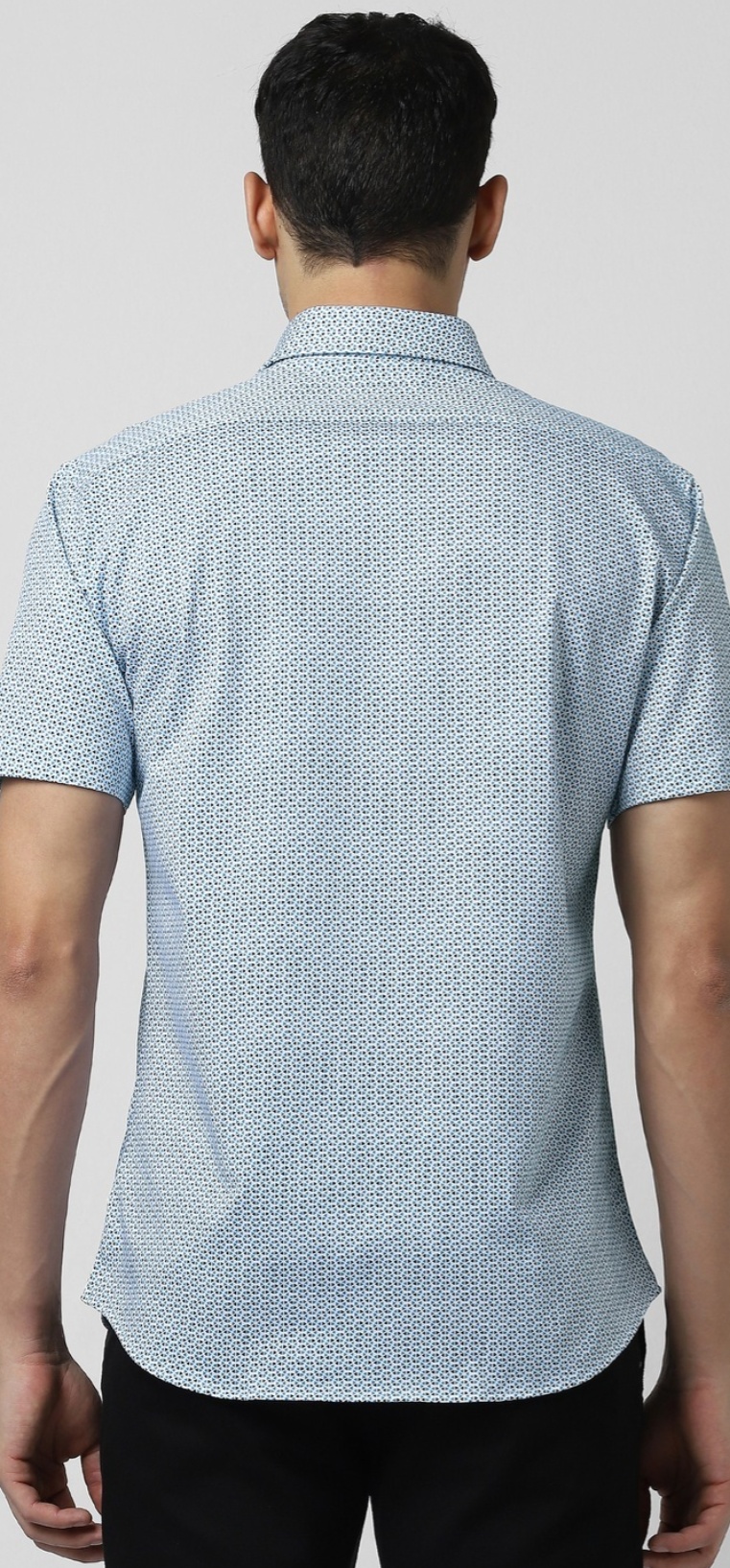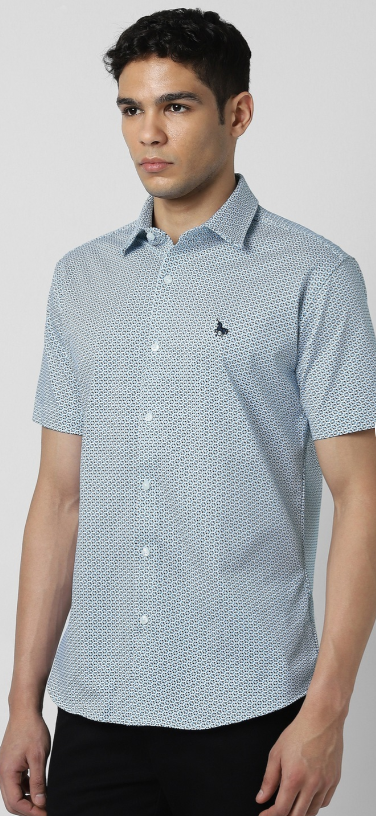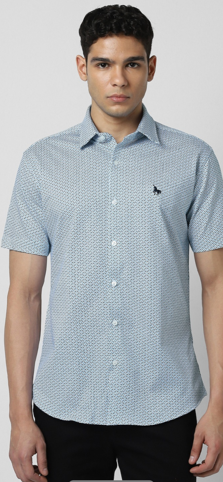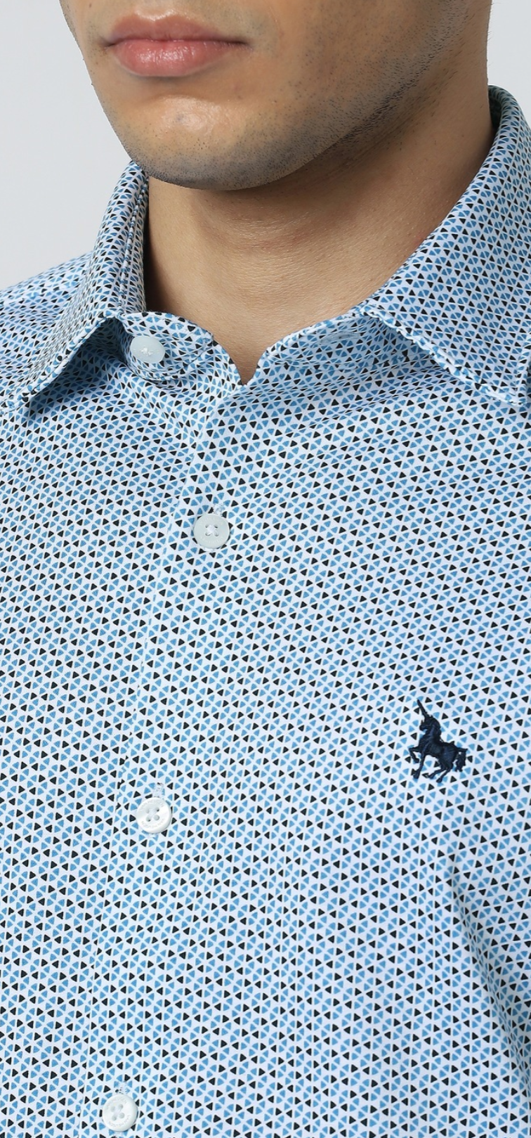 MEN BLUE SLIM FIT PRINT HALF SLEEVES CASUAL SHIRT