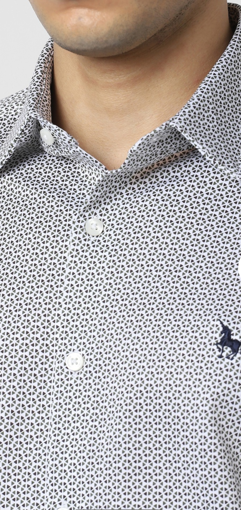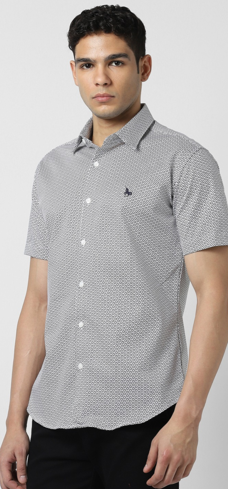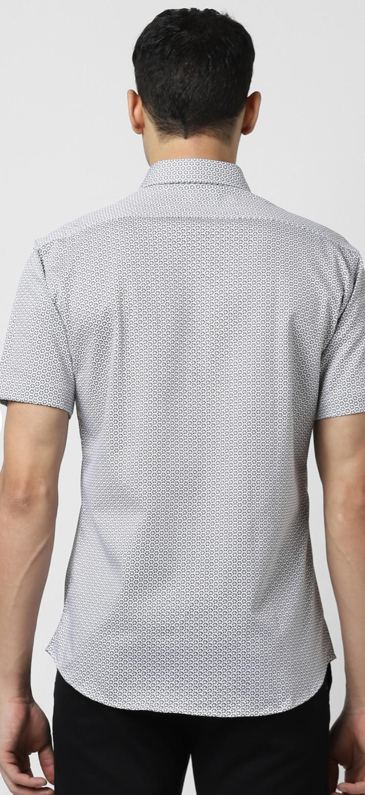 MEN WHITE SLIM FIT PRINT HALF SLEEVES CASUAL SHIRT
