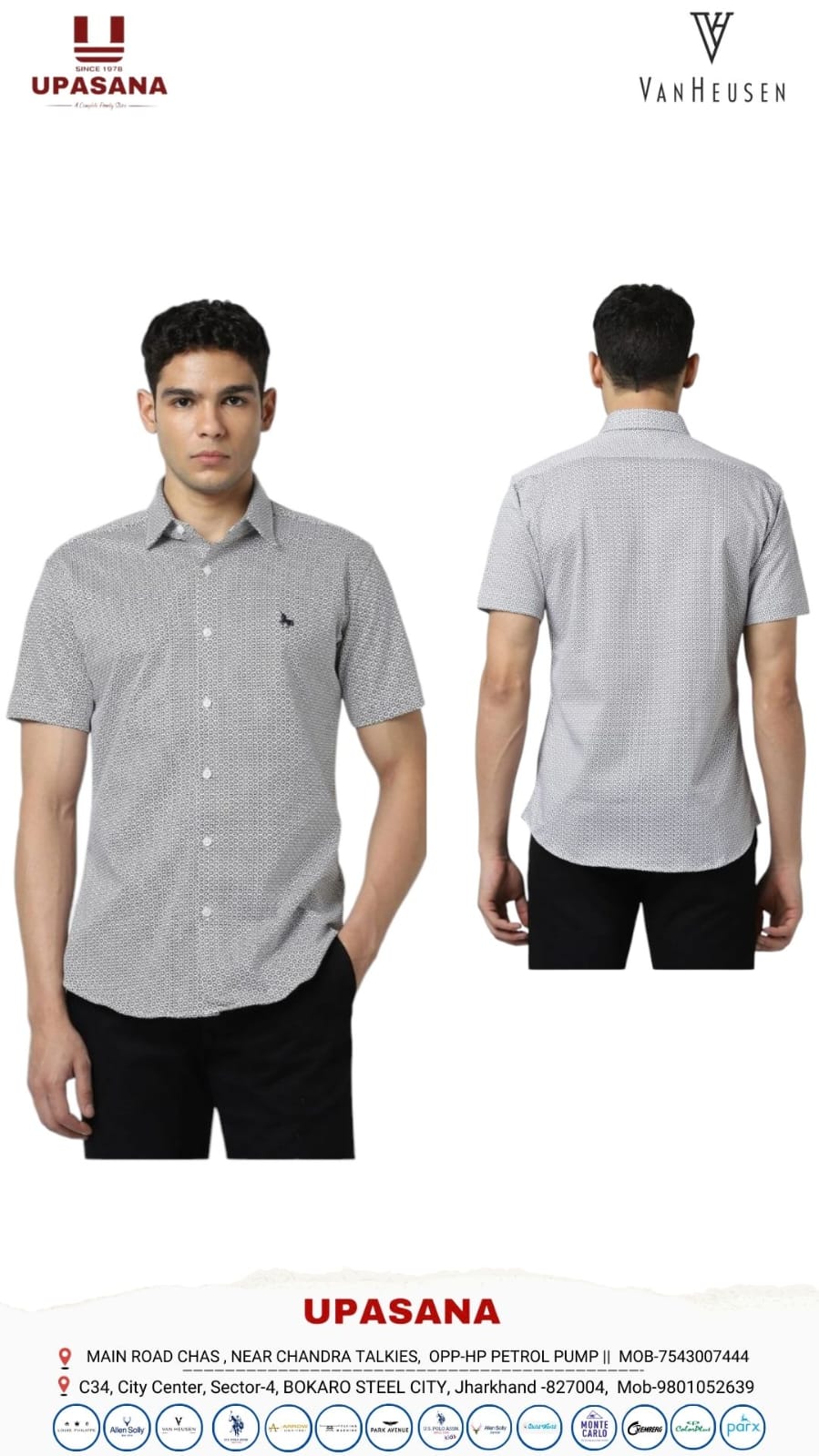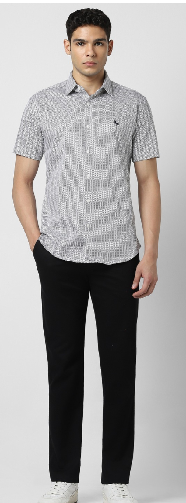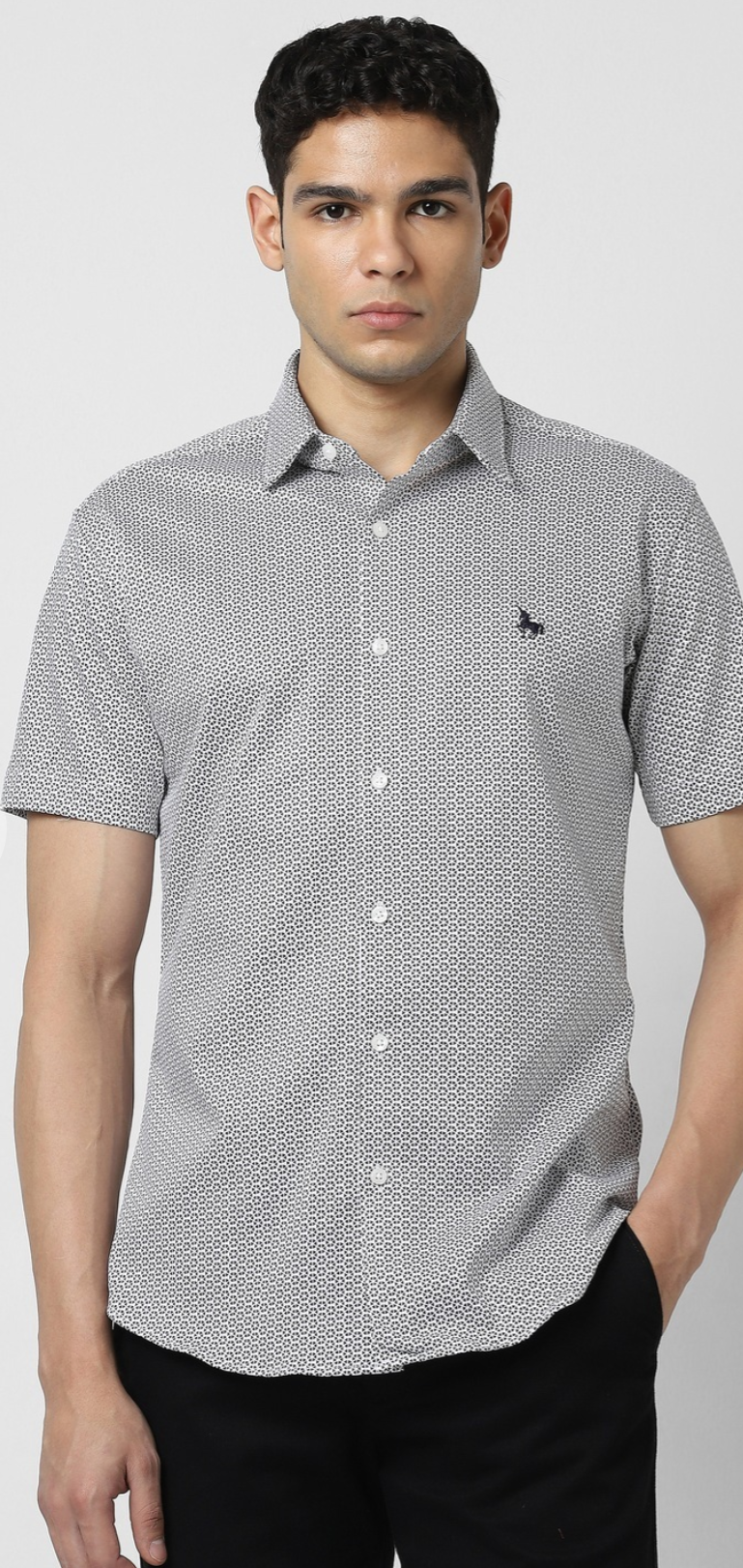 MEN WHITE SLIM FIT PRINT HALF SLEEVES CASUAL SHIRT