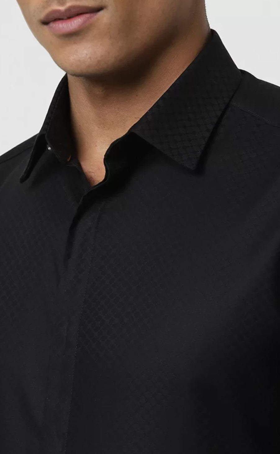 V Dot Men Cutaway Collar Textured Cotton Slim Fit Formal Shirt