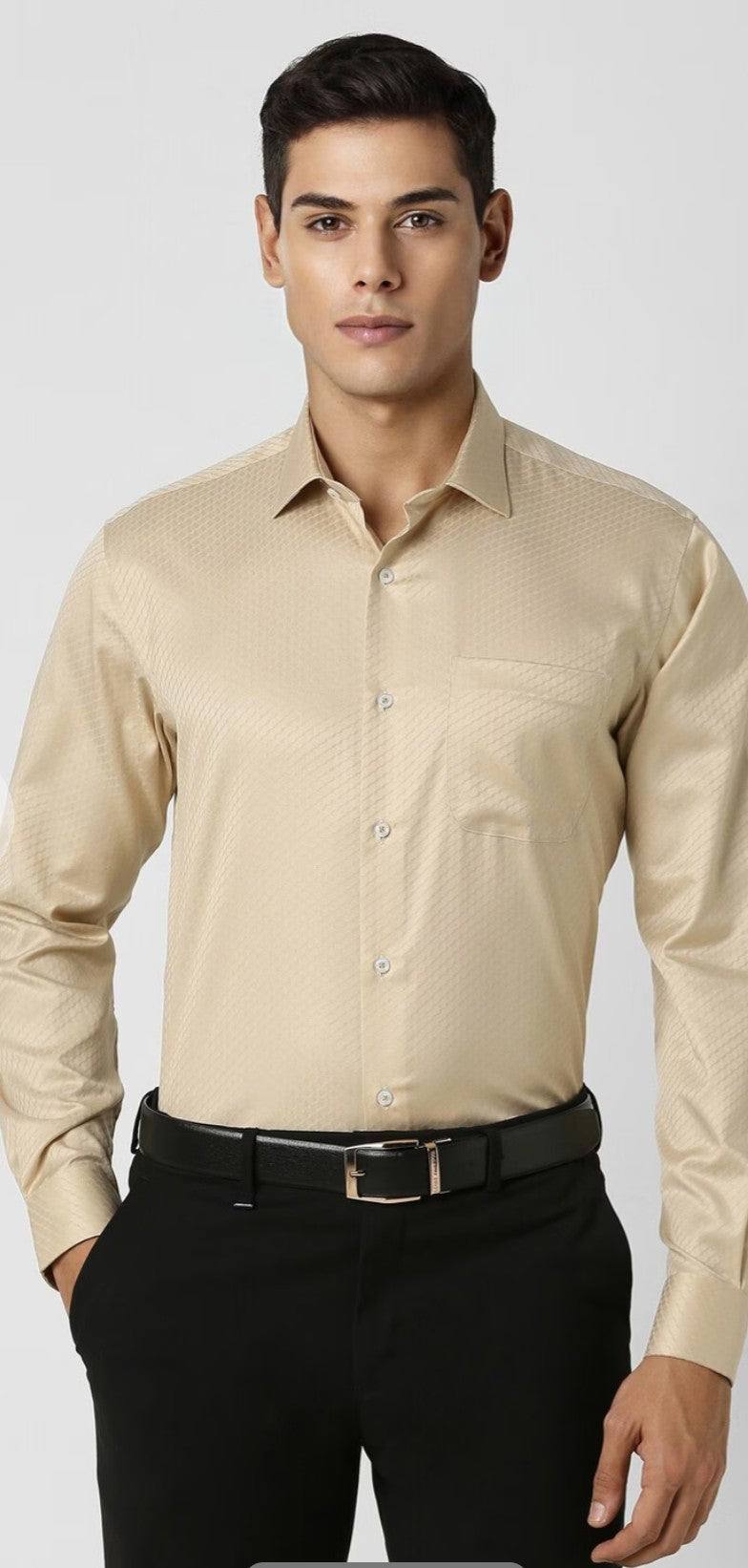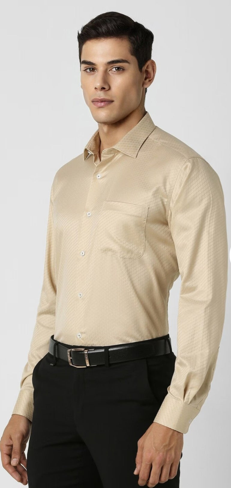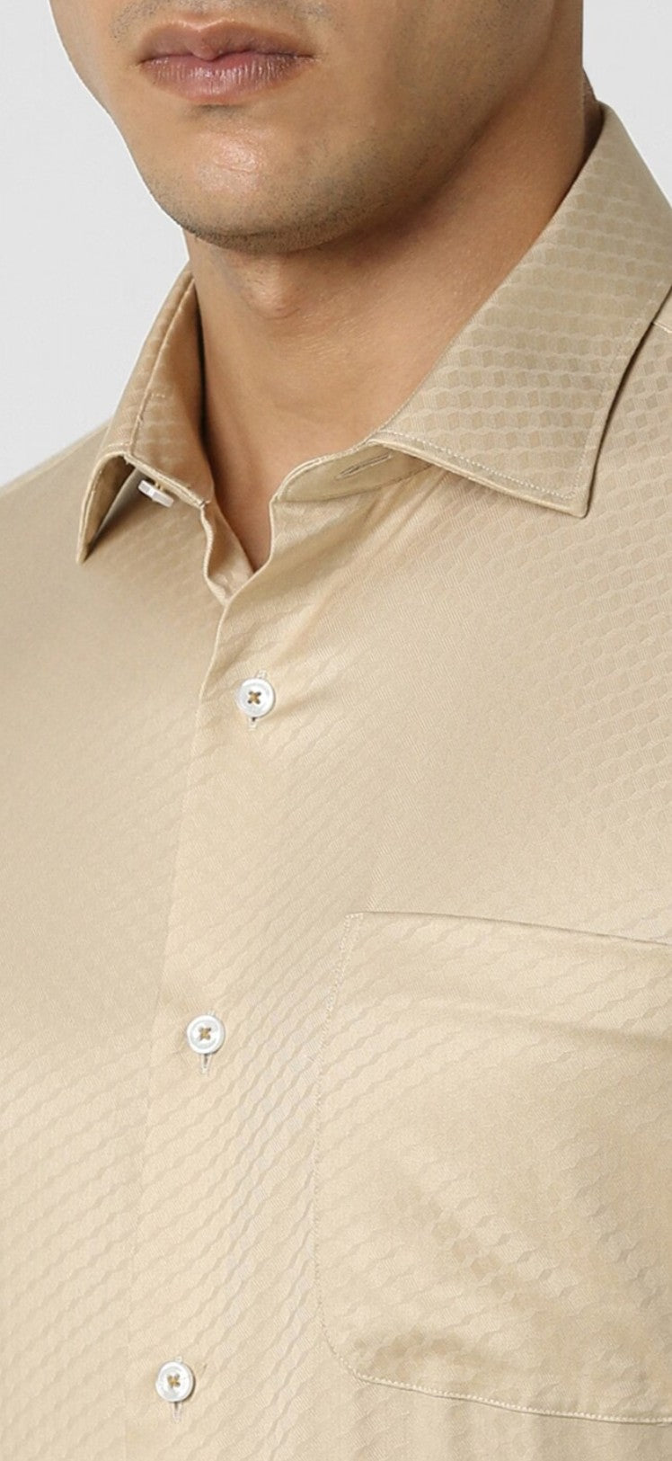 MEN KHAKI SLIM FIT TEXTURED FULL SLEEVES FORMAL SHIRT