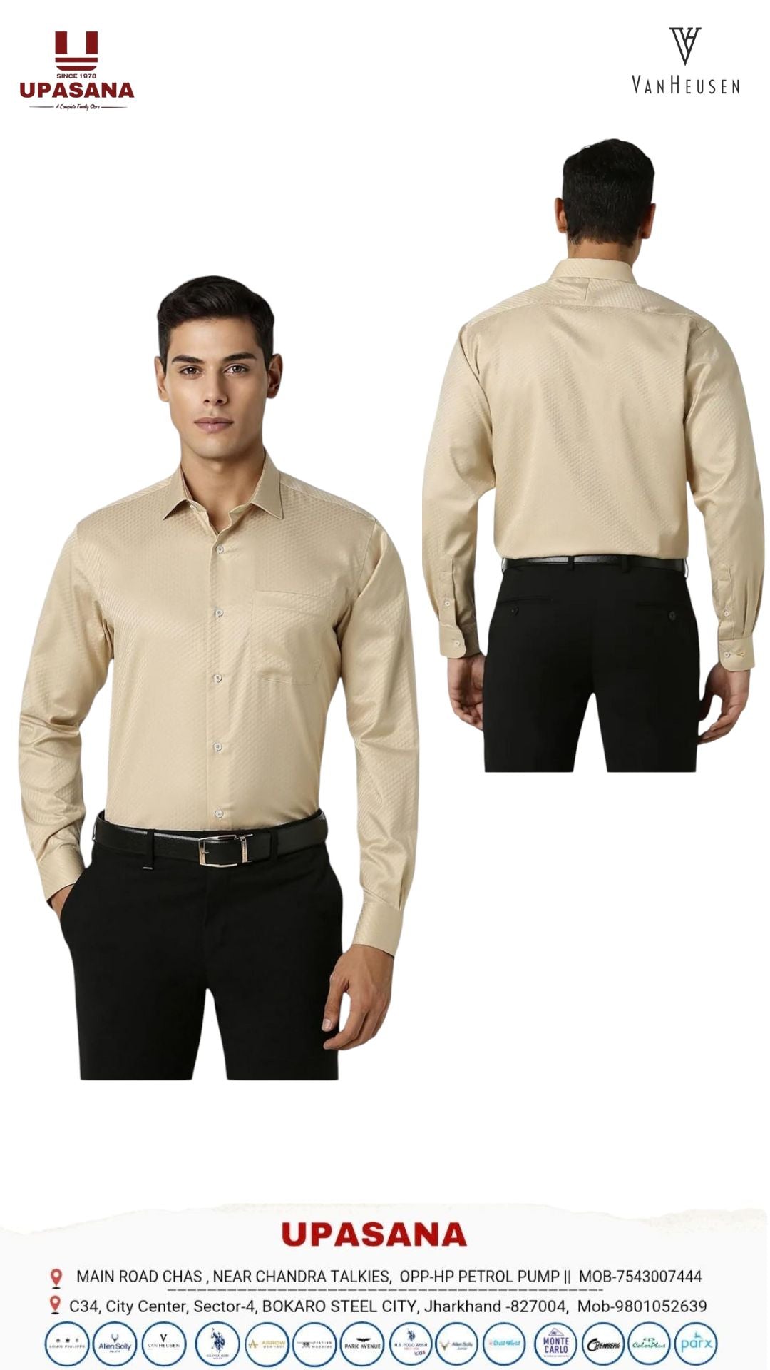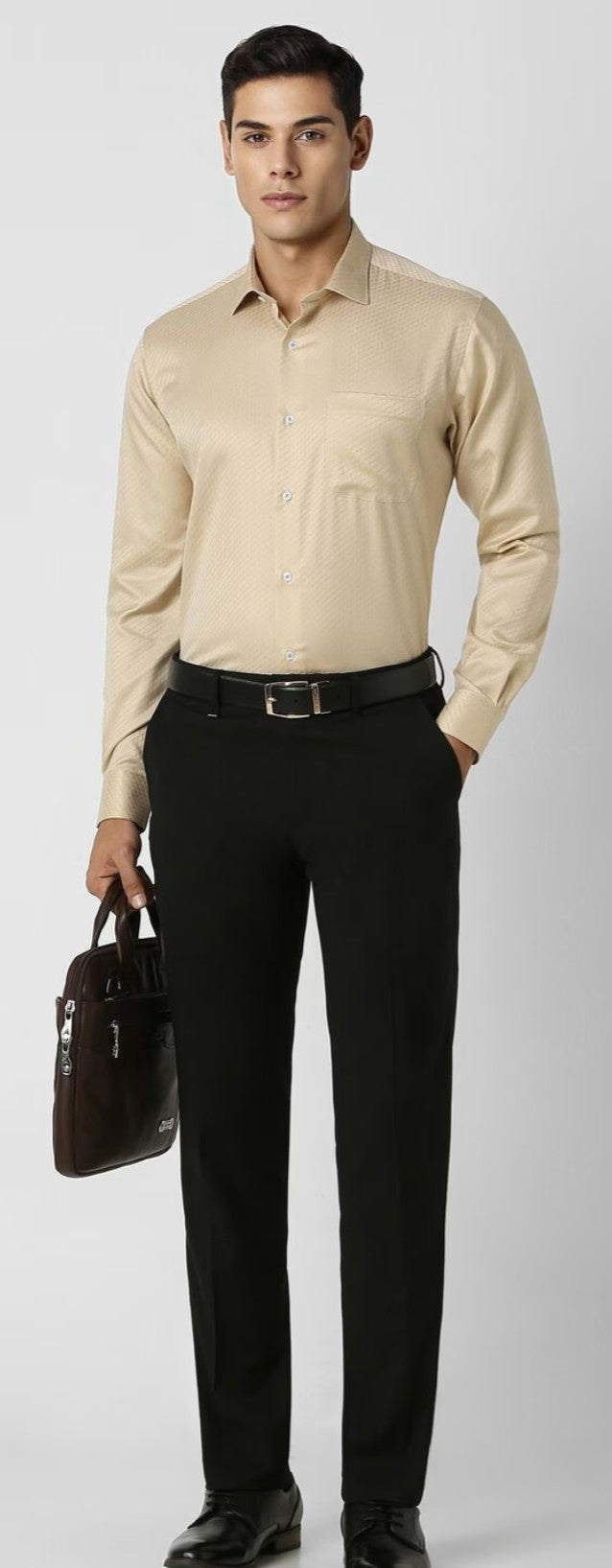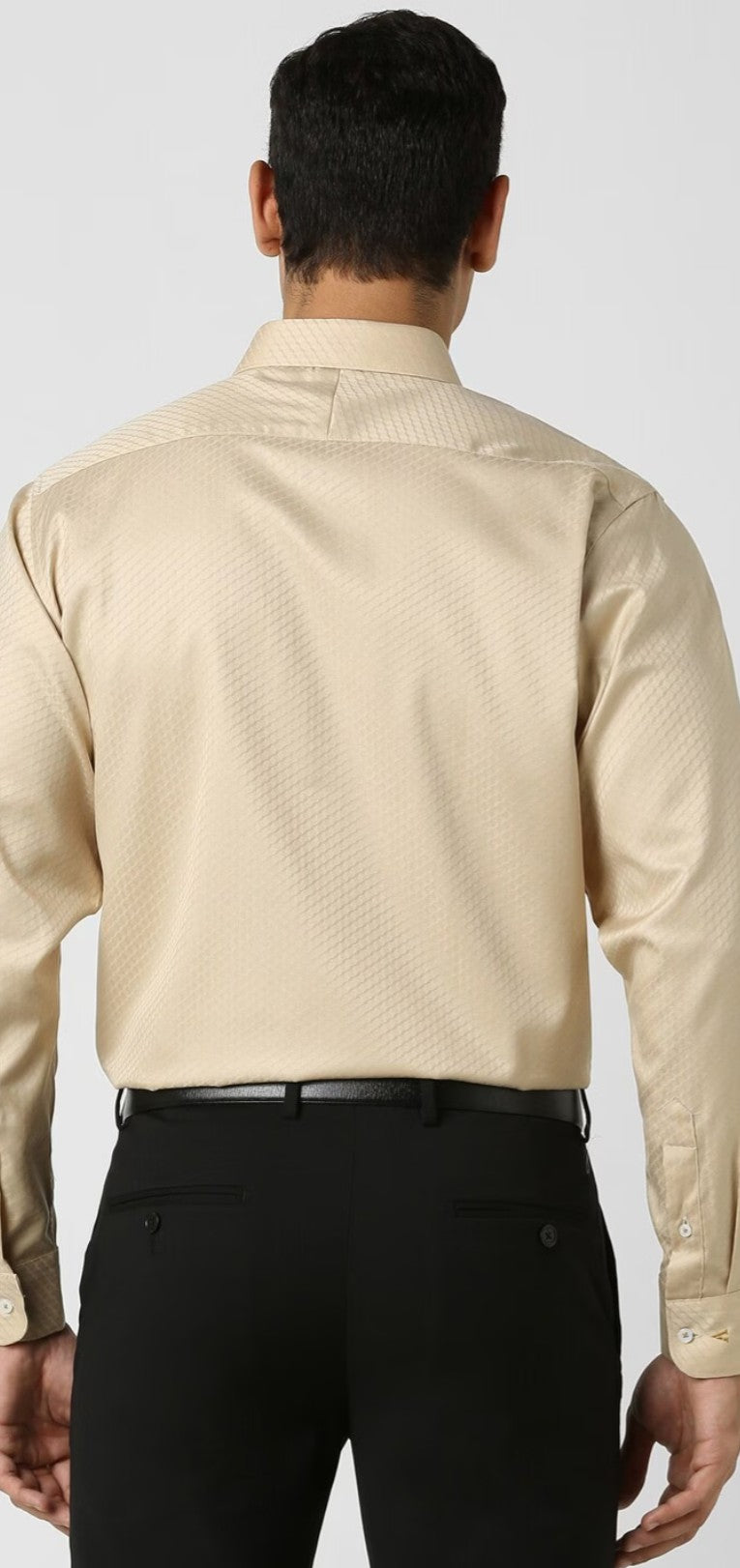MEN KHAKI SLIM FIT TEXTURED FULL SLEEVES FORMAL SHIRT