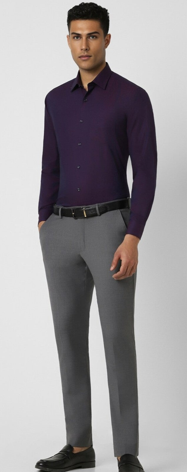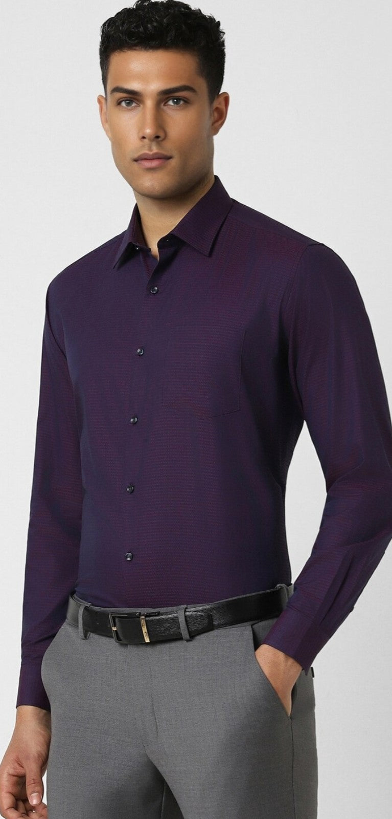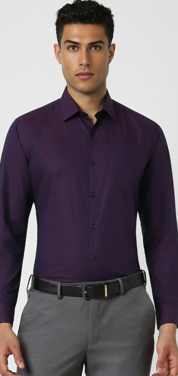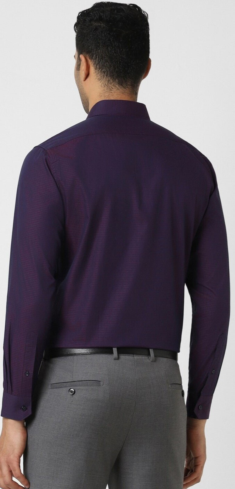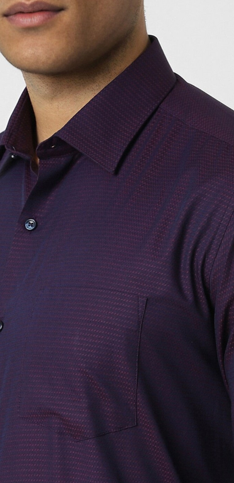MEN PURPLE REGULAR FIT TEXTURED FULL SLEEVES FORMAL SHIRT