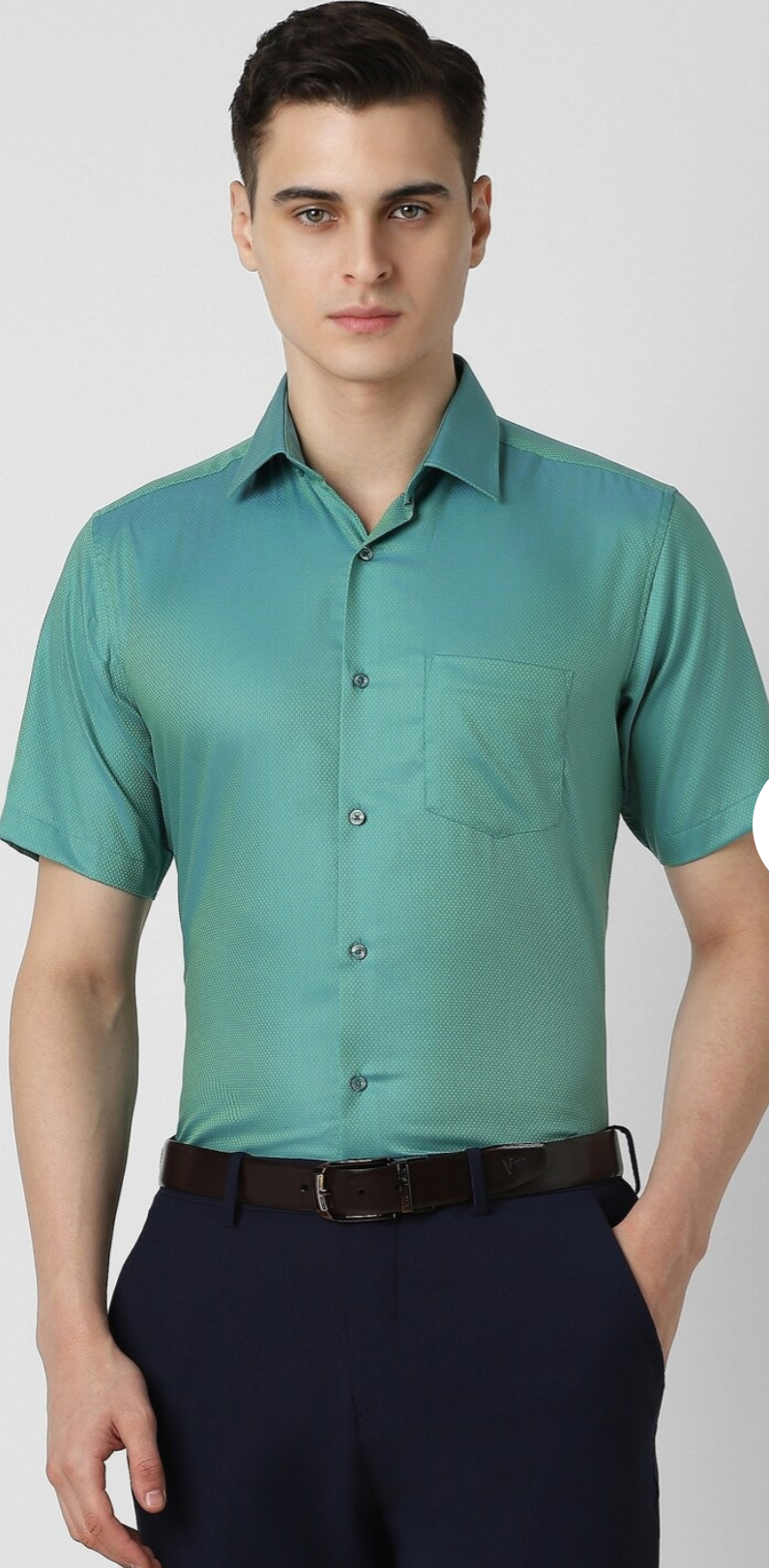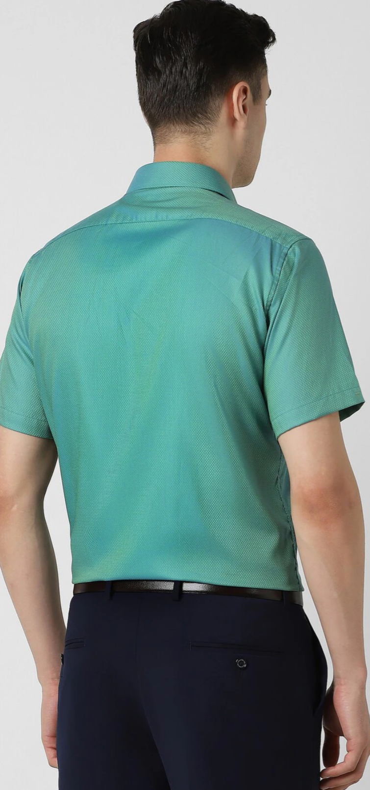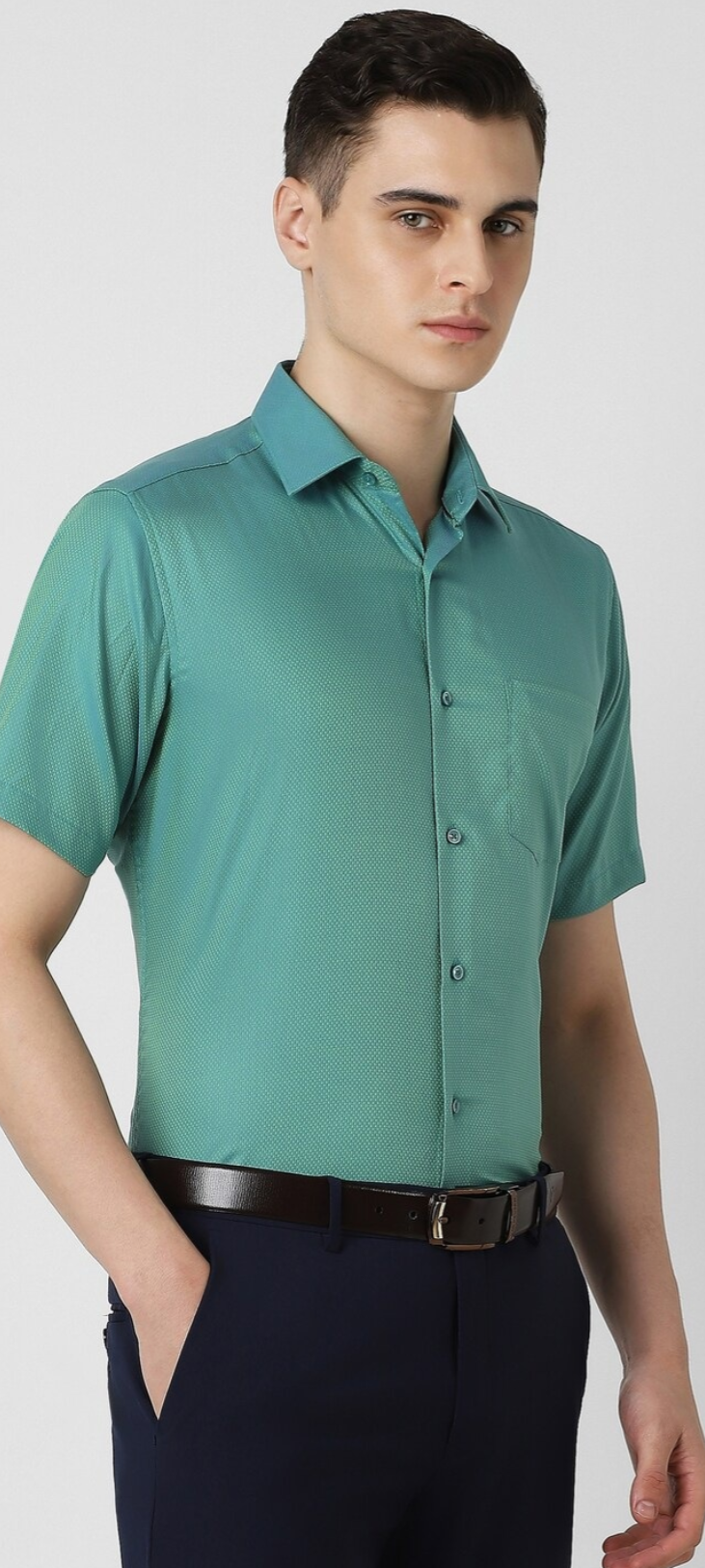 MEN GREEN REGULAR FIT PRINT HALF SLEEVES FORMAL SHIRT
