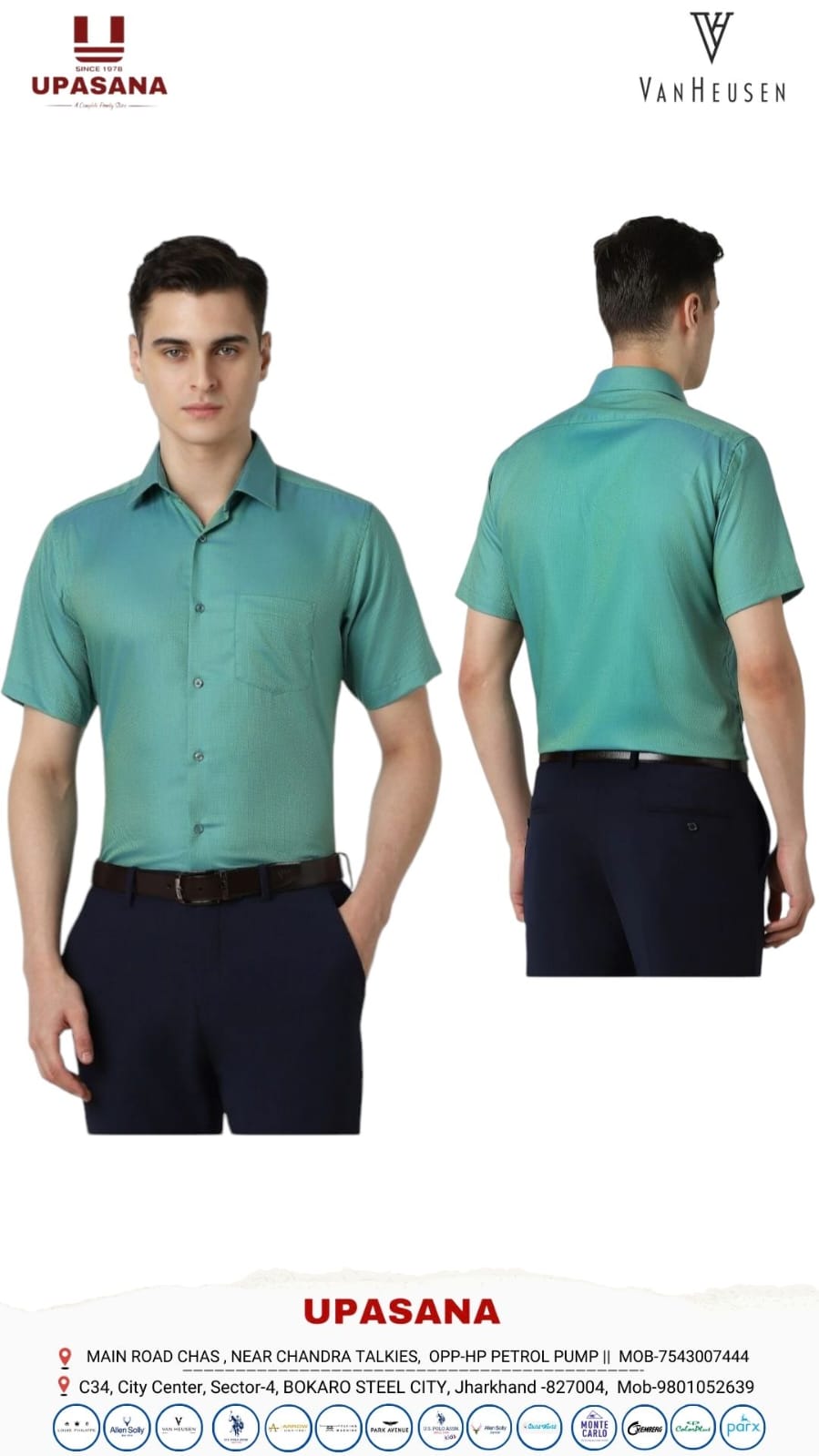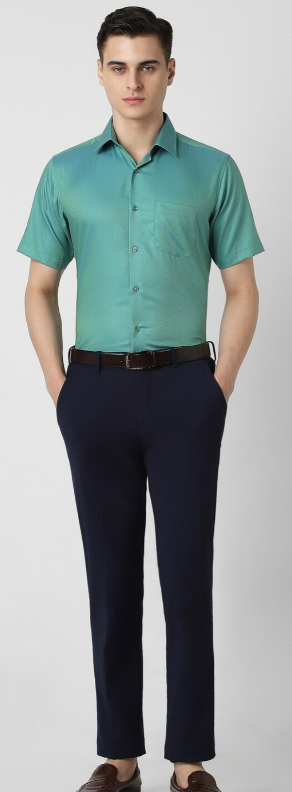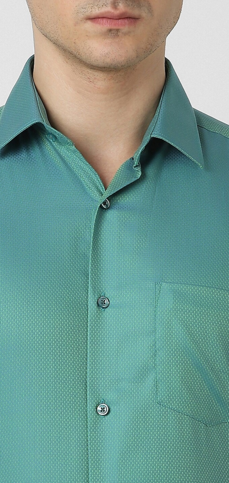 MEN GREEN REGULAR FIT PRINT HALF SLEEVES FORMAL SHIRT