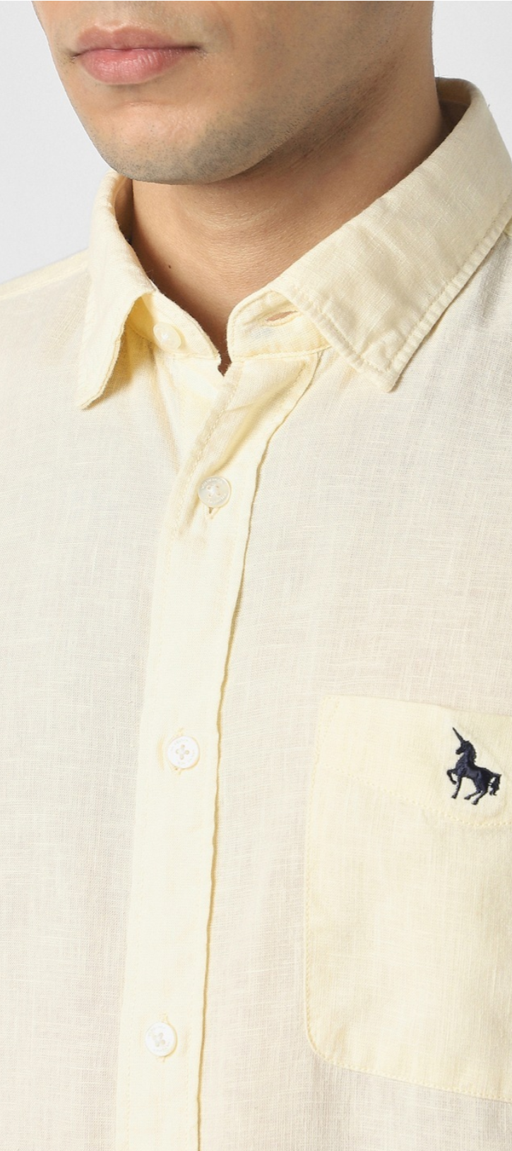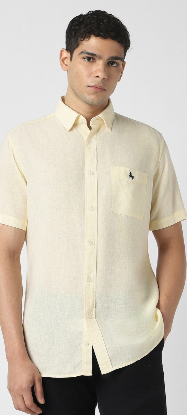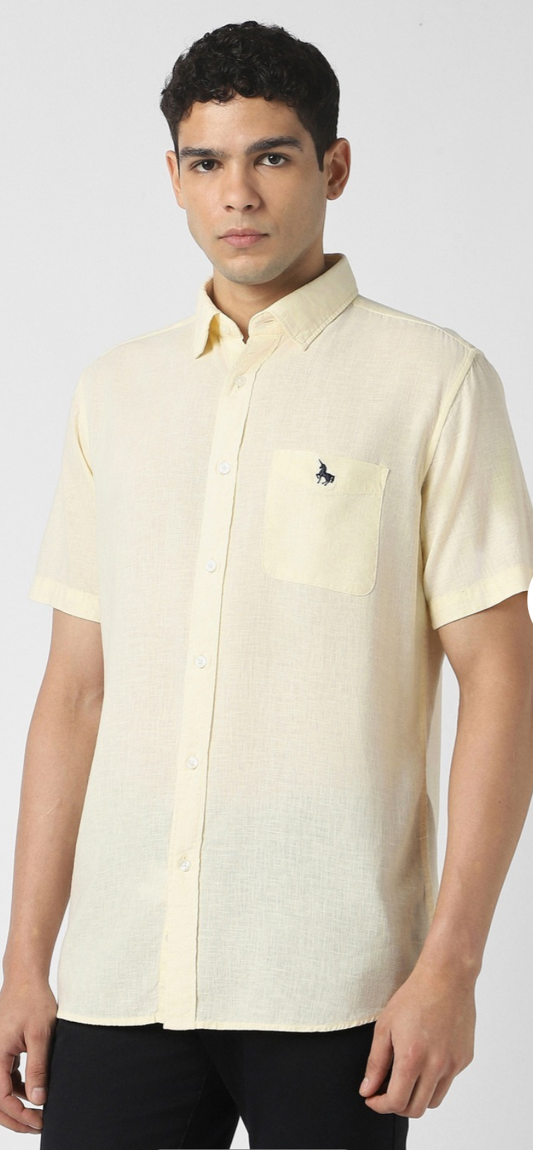 VAN HEUSEN CREAM SHIRT SLIM FIT CASUAL HALF SLEEVES