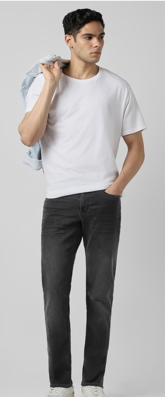 VAN HEUSEN DENIM LABS - MEN GREY MID WASH REGULAR FIT JEANS