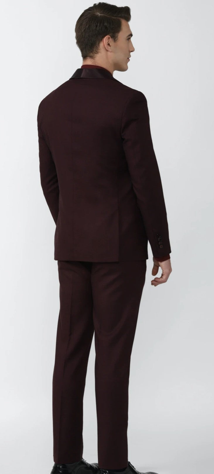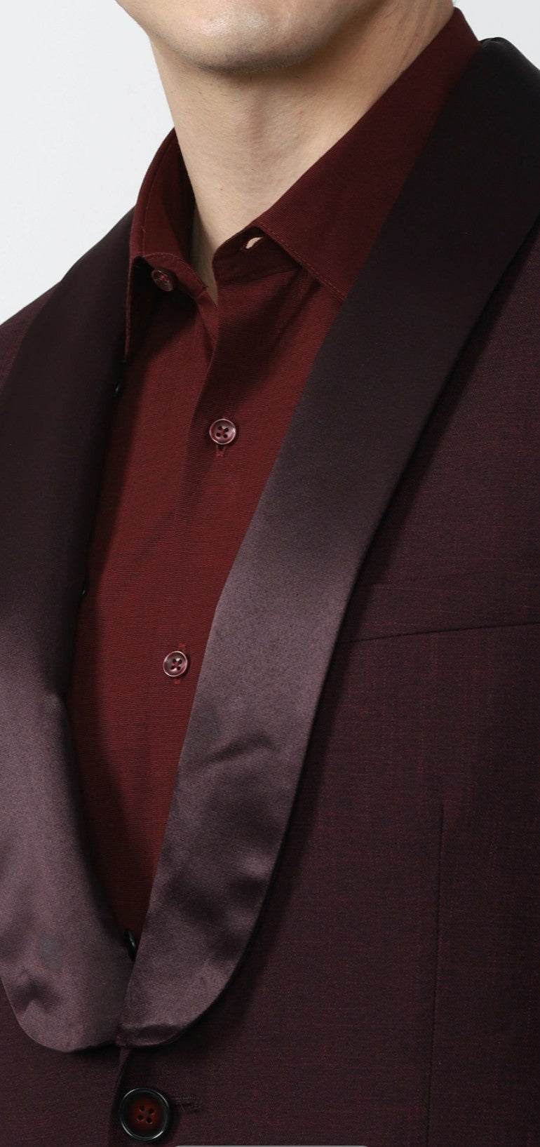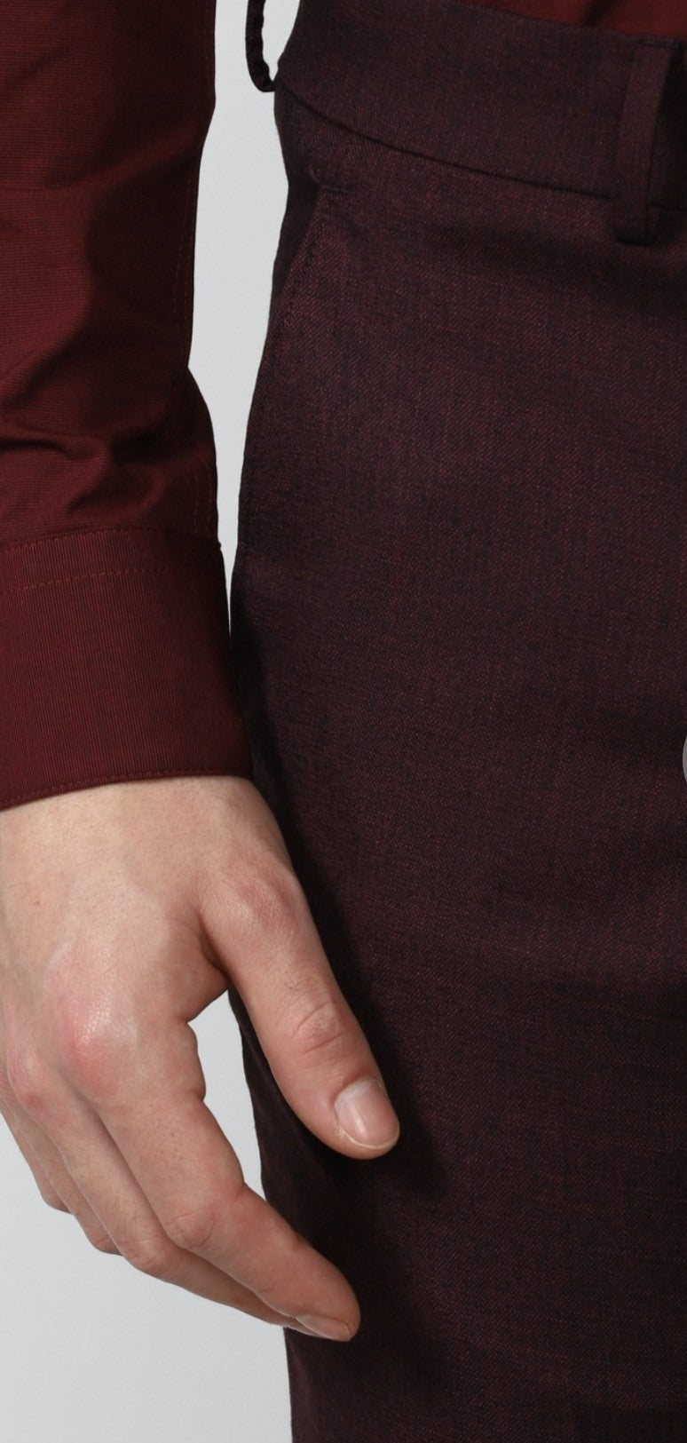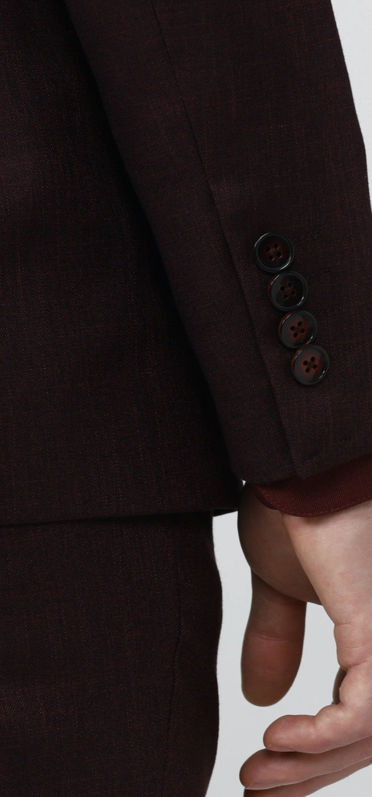 MEN MAROON TEXTURED SLIM FIT WEDDING TWO PIECE SUIT